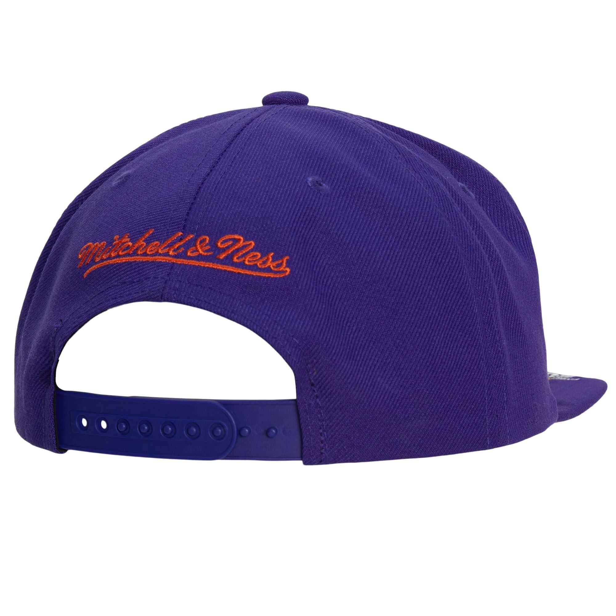 Фиолетовая бейсболка с оранжевыми акцентами Mitchell & Ness Front Face Snapback HWC Phoenix Suns в ретро-стиле имеет застежку-защелку сзади для регулировки, вышитый логотип команды из Финикса, бренда Mitchell & Ness сзади и прямой козырек для максимального стиля. Бейсболка выполнена из полиэстера с оранжевой нижней частью козырька.