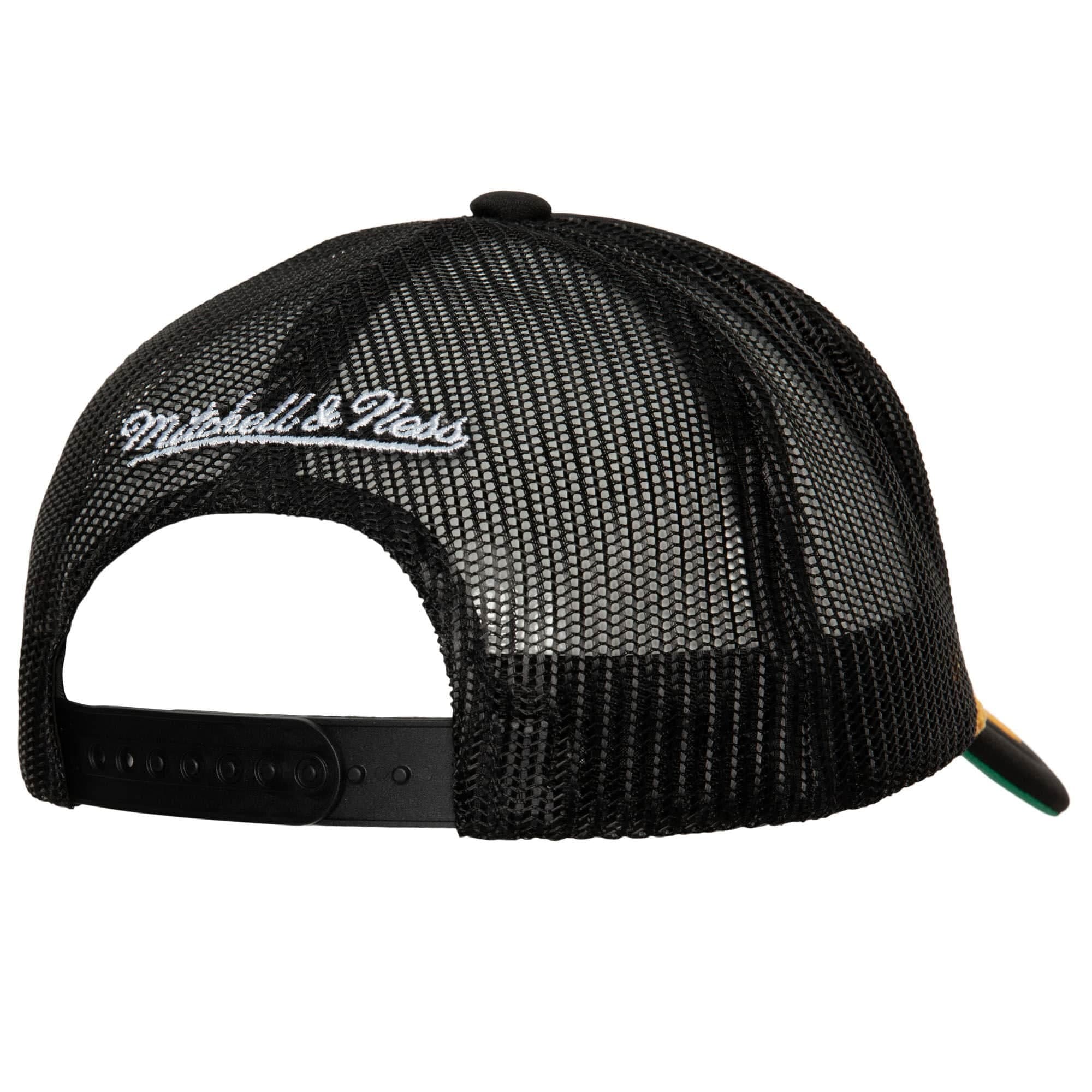 Черная бейсболка Mitchell & Ness Gold Leaf Trucker Brooklyn Nets Hat в ретро-стиле с воздухопроницаемой сеткой имеет застежку-защелку сзади для регулировки, вышитый логотип команды Brooklyn Nets, бренда Mitchell & Ness сзади и загнутый козырек с золотыми листьями для максимального стиля. Бейсболка выполнена из 100% полиэстера с зеленой нижней частью козырька.- Цвет: Черный