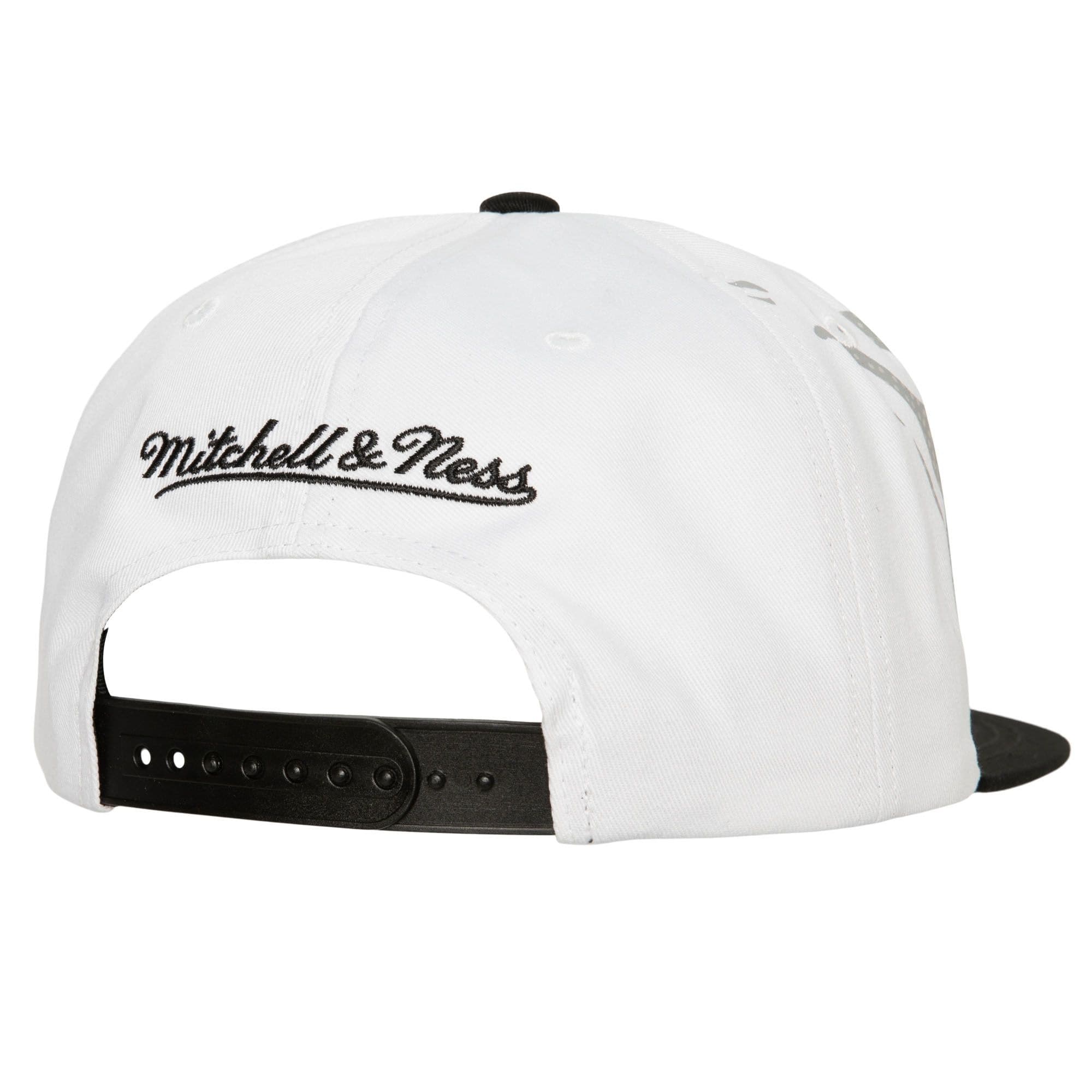 Белая бейсболка Mitchell & Ness Hot Fire Snapback Brooklyn Nets Hat в ретро-стиле имеет застежку-защелку сзади для регулировки, вышитый логотип команды Brooklyn Nets, графику в виде языков пламени, логотип бренда Mitchell & Ness сзади и прямой козырек для максимального стиля. Бейсболка выполнена из 100% хлопка с зеленой нижней частью козырька.