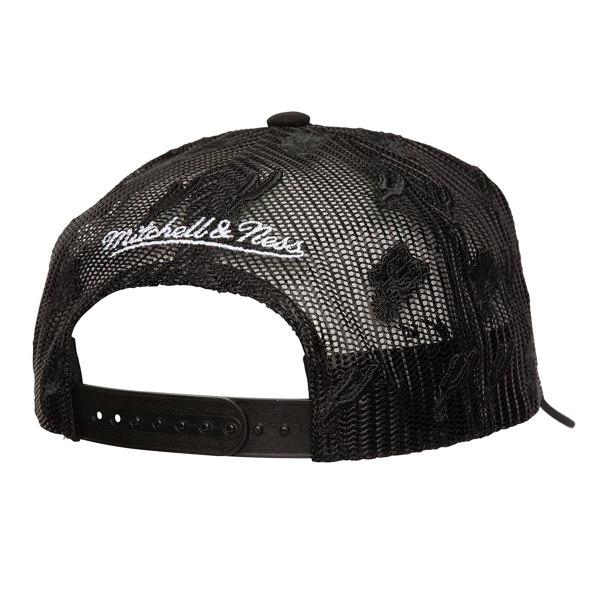 Черная бейсболка с сеткой Mitchell & Ness Monogram Trucker HWC San Antonio Spurs в ретро-стиле имеет застежку-защелку сзади для регулировки, вышитый логотип команды Сан-Антонио Сперс, бренда Mitchell & Ness сзади и загнутый козырек для максимального стиля. Бейсболка выполнена из полиэстера с серой нижней частью козырька.- Цвет: Черный