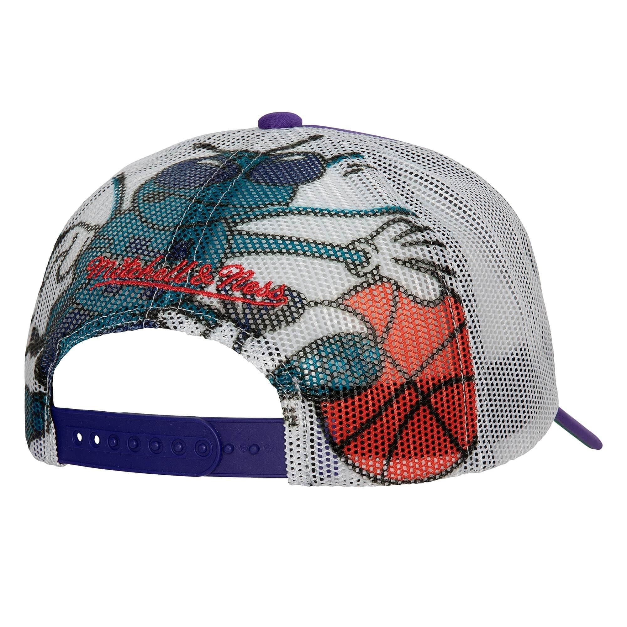Фиолетовая бейсболка Mitchell & Ness Off The Backboard Trucker Snapback HWC Charlotte Hornets Hat в ретро-стиле с воздухопроницаемой сеткой имеет застежку-защелку сзади для регулировки, вышитый логотип команды Hornets со знаменитым шершнем, бренда Mitchell & Ness сзади и загнутый козырек для максимального стиля. Бейсболка выполнена из 100% полиэстера с зеленой нижней частью козырька.
