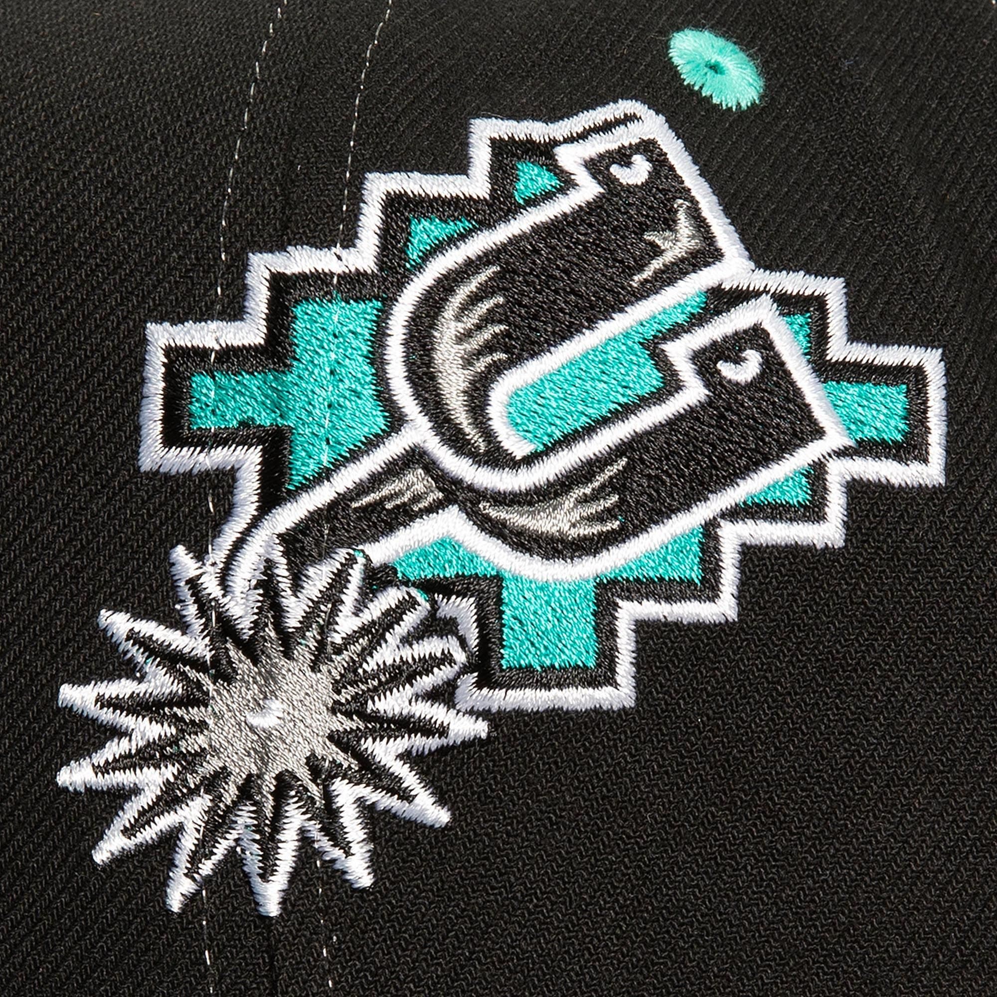 Черно-бирюзовая бейсболка Mitchell & Ness Overbite Pro Snapback HWC San Antonio Spurs в ретро-стиле имеет застежку-защелку сзади для регулировки, вышитый логотип команды Сан-Антонио Сперс, бренда Mitchell & Ness сзади и загнутый козырек для максимального стиля. Бейсболка выполнена из полиэстера.
