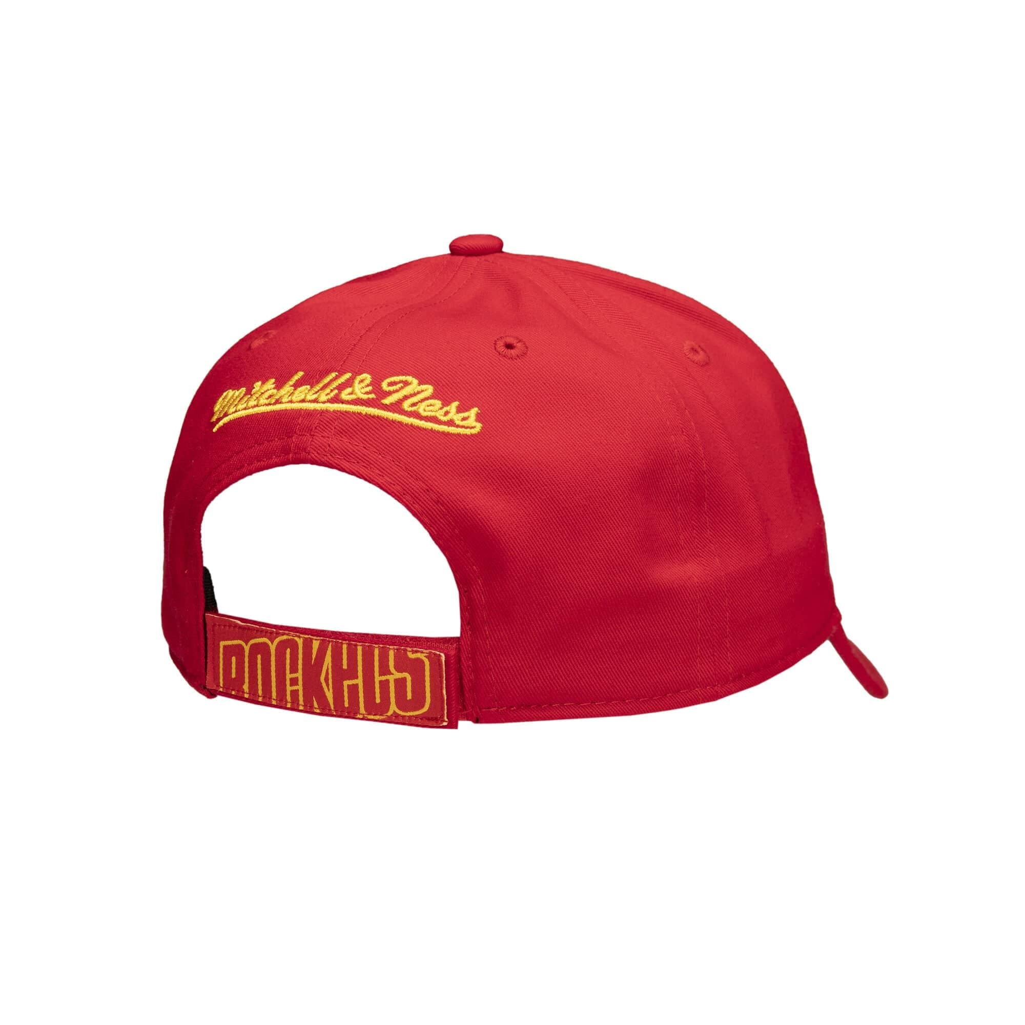 Красная бейсболка Mitchell & Ness Prime Roy Velcro Strapback HWC Houston Rockets Hat в ретро-стиле имеет застежку-защелку сзади для регулировки, вышитый логотип команды Рокетс, бренда Mitchell & Ness сзади и загнутый козырек для максимального стиля. Бейсболка выполнена из хлопка- Цвет: Красный