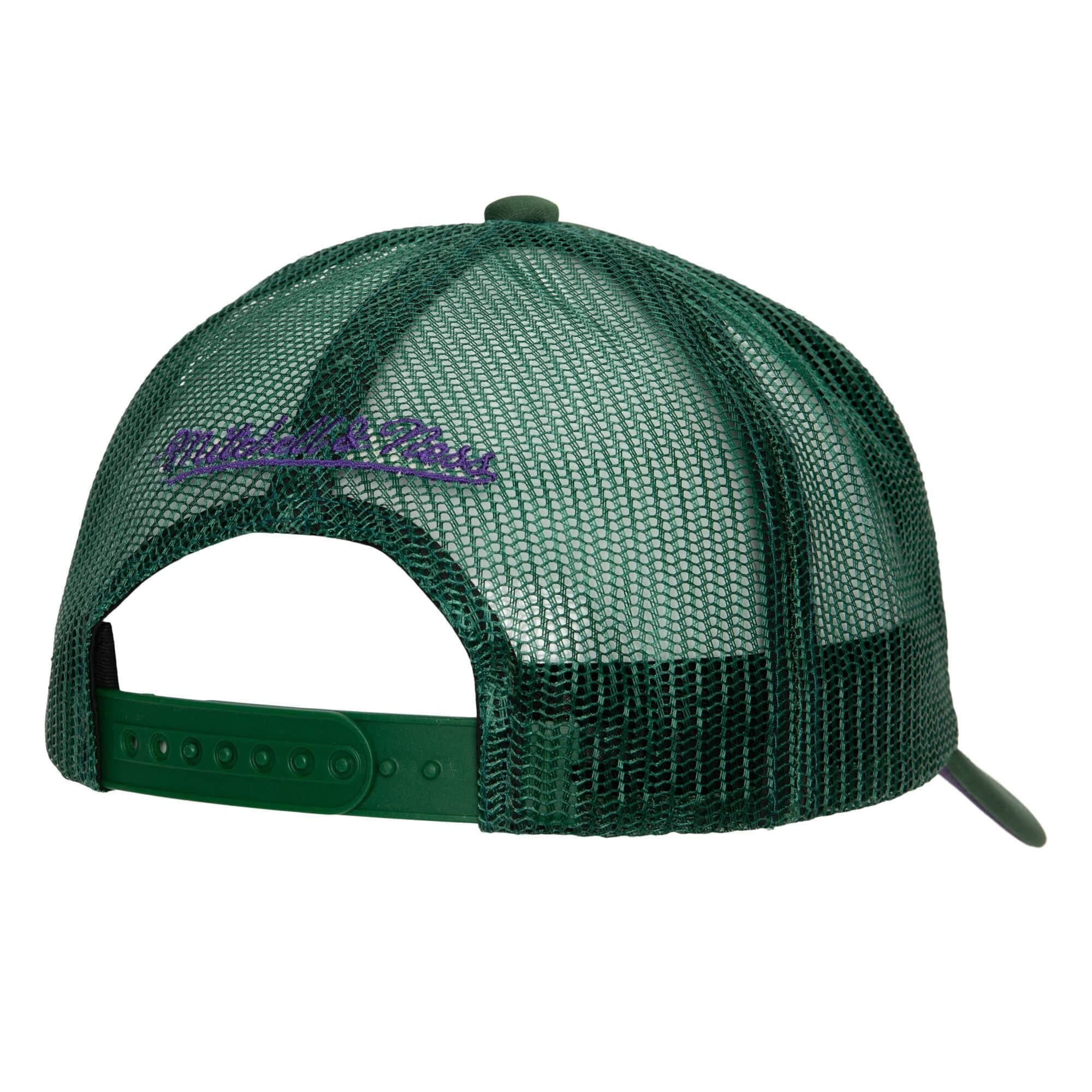Зеленая бейсболка с сеткой Mitchell & Ness Puff The Magic Trucker Snapback HWC Milwaukee Bucks Hat в ретро-стиле имеет застежку-защелку сзади для регулировки, вышитый логотип команды Бакс, бренда Mitchell & Ness сзади и загнутый козырек для максимального стиля. Бейсболка выполнена из полиэстера с фиолетовой нижней частью козырька.- Цвет: Зеленый