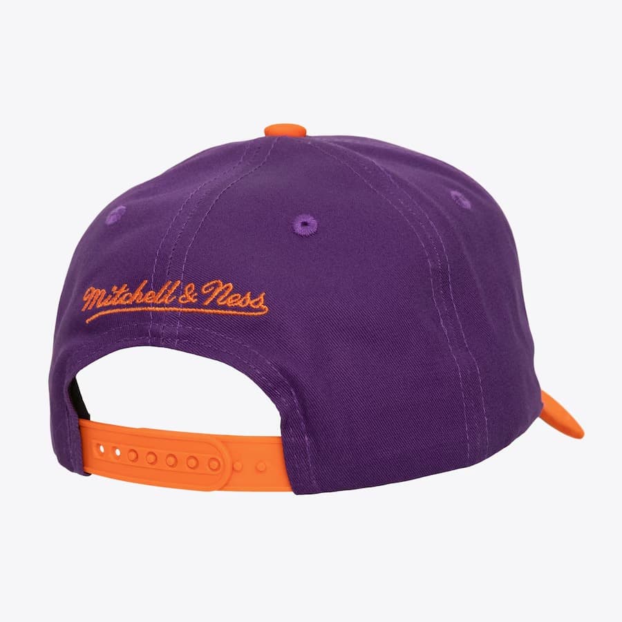 Фиолетовая бейсболка с оранжевыми акцентами Mitchell & Ness Purple Phoenix Suns Eldy Script Hardwood Classics Snapback Hat в ретро-стиле имеет застежку-защелку сзади для регулировки, вышитый логотип команды Санс, бренда Mitchell & Ness сзади и загнутый козырек для максимального стиля. Бейсболка выполнена из 100% хлопка с зеленой нижней частью козырька.- Цвет: Фиолетовый