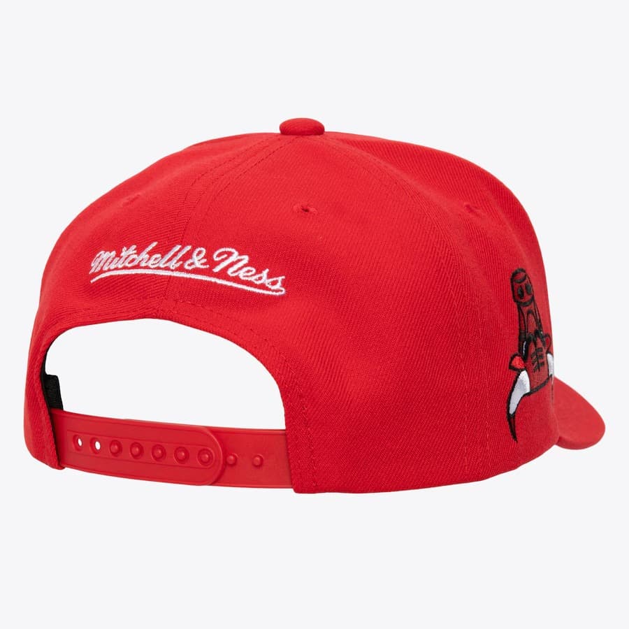 Красная бейсболка с черными акцентами Mitchell & Ness Red Chicago Bulls Upside Pro Snapback Hat в ретро-стиле имеет застежку-защелку сзади для регулировки, вышитый перевернутый логотип команды Буллз, бренда Mitchell & Ness сзади и загнутый козырек для максимального стиля. Бейсболка выполнена из 100% полиэстера с серой нижней частью козырька.