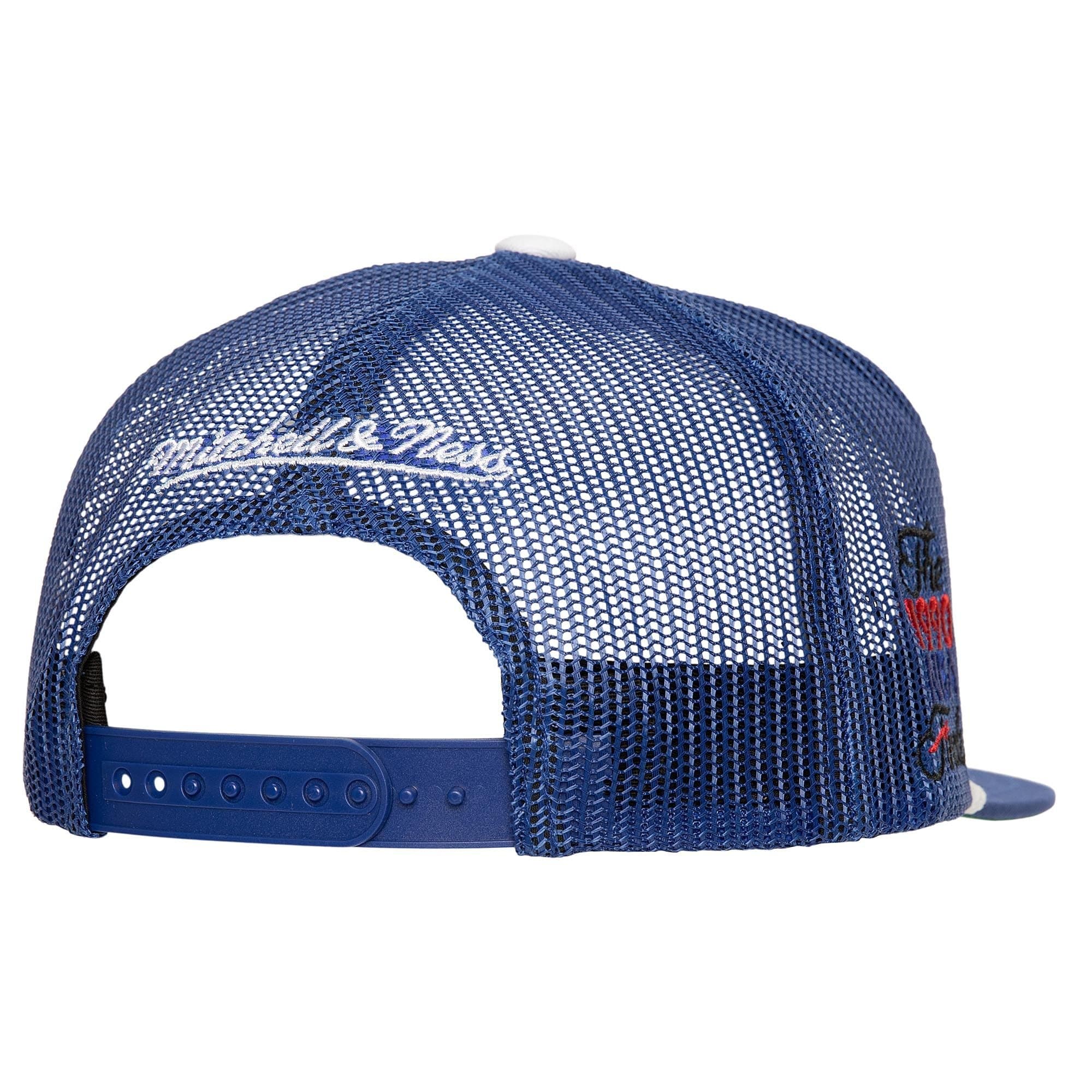 Синяя бейсболка с сеткой Mitchell & Ness Roper Trucker HWC Detroit Pistons Hat в ретро-стиле имеет застежку-защелку сзади для регулировки, вышитый логотип команды Pistons, логотип бренда Mitchell & Ness сзади, логотип финала НБА 1990 и загнутый козырек для максимального стиля. Бейсболка выполнена из полиэстера и хлопка с зеленой нижней частью козырька.- Цвет: Синий