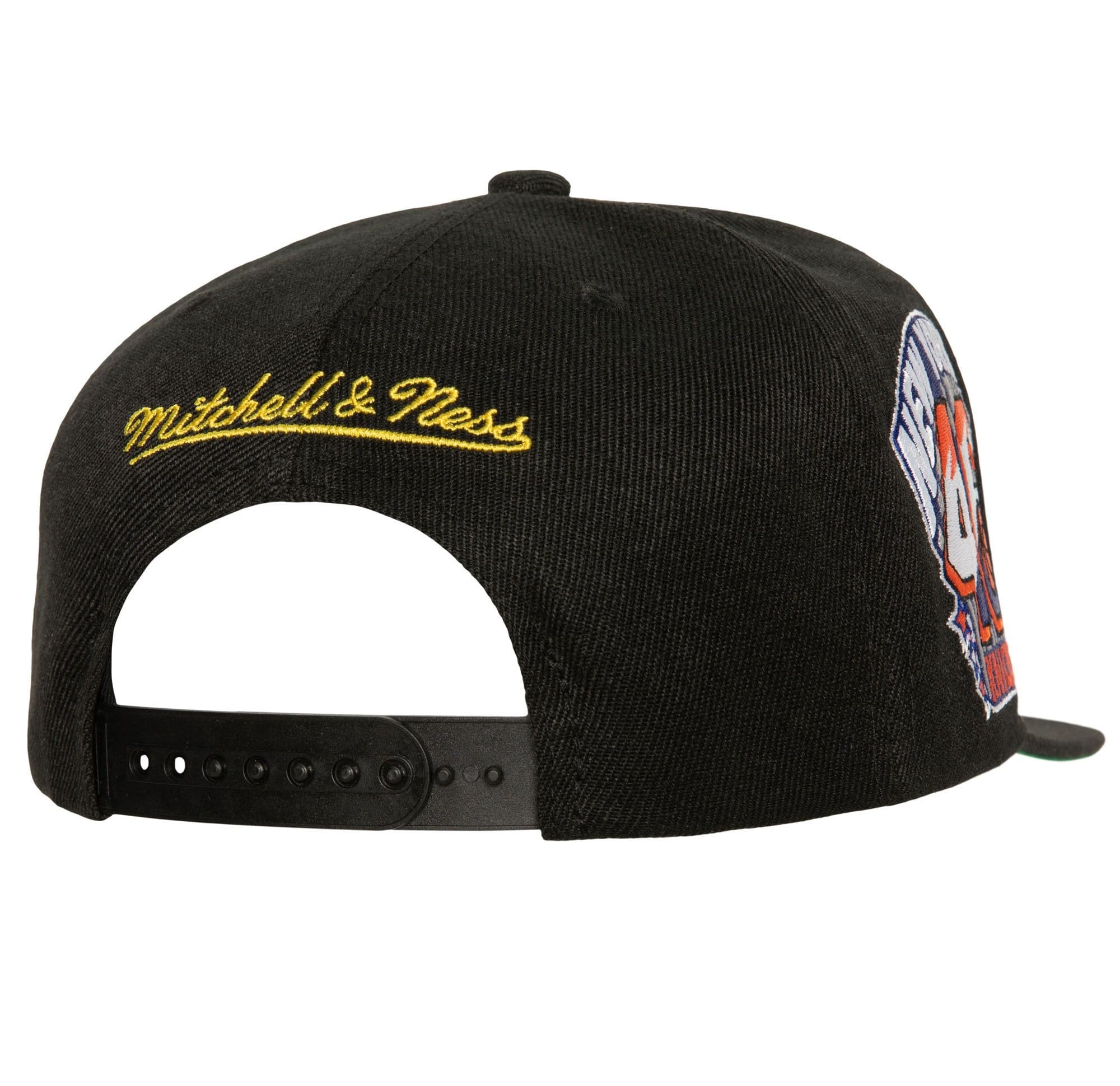 Черная бейсболка с оранжевыми акцентами Mitchell & Ness Side Jam Snapback HWC New York Knicks в ретро-стиле имеет застежку-защелку сзади для регулировки, вышитый логотип команды Никс, бренда Mitchell & Ness сзади и прямой козырек для максимального стиля. Бейсболка выполнена из полиэстера с зеленой нижней частью козырька.- Цвет: Черный