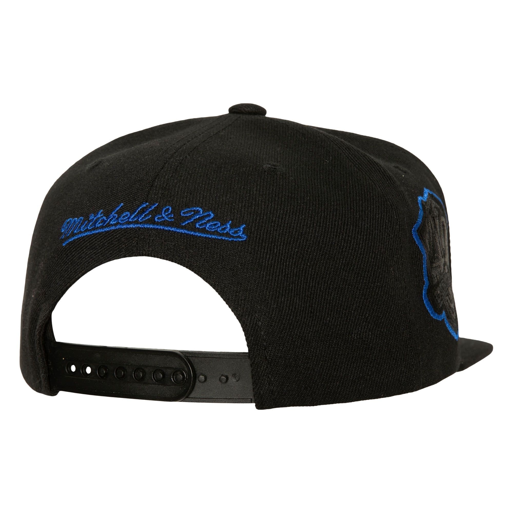 Черная бейсболка Mitchell & Ness TC Bottoms Snapback HWC Denver Nuggets Hat в ретро-стиле имеет застежку-защелку сзади для регулировки, вышитый логотип команды, логотип бренда Mitchell & Ness сзади и прямой козырек для максимального стиля. Бейсболка выполнена из полиэстера с синей нижней частью козырька.- Цвет: Черный