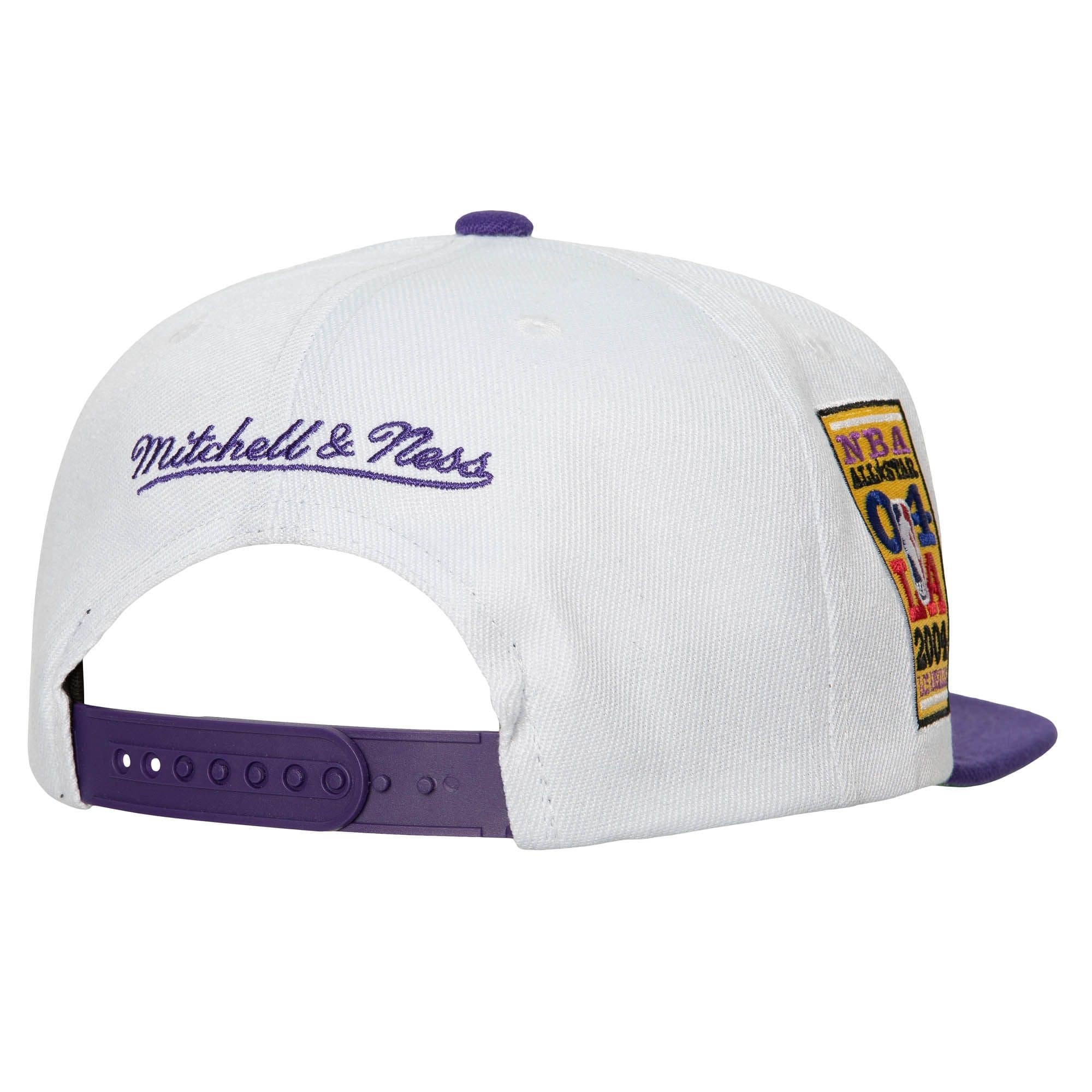 Белая бейсболка Mitchell & Ness Toss Up Snapback Los Angeles Lakers Hat в ретро-стиле имеет застежку-защелку сзади для регулировки, вышитый логотип команды Лэйкерс, логотип Уикенда Всех Звезд НБА 2004-го года в Лос Анджелесе, бренда Mitchell & Ness сзади и прямой козырек для максимального стиля. Бейсболка выполнена из полиэстера с зеленой нижней частью козырька.- Цвет: Белый