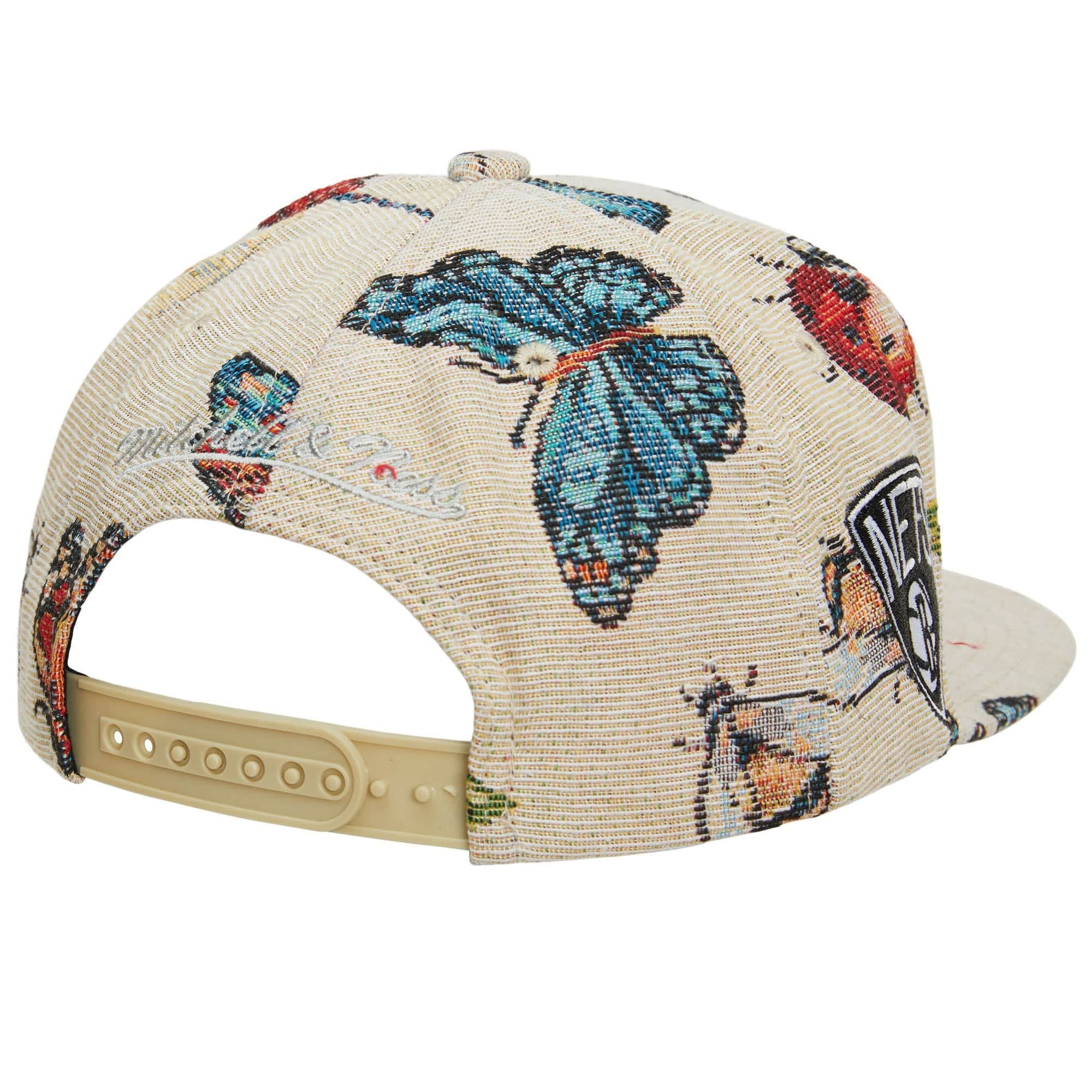 Бежевая бейсболка Mitchell & Ness True Tap Snapback Brooklyn Nets Hatв ретро-стиле имеет застежку-защелку сзади для регулировки, вышитый логотип команды Brooklyn Nets, бренда Mitchell & Ness сзади, графику бабочек и прямой козырек для максимального стиля. Бейсболка выполнена из смеси шерсти и жаккарда с контрастной нижней частью козырька.- Цвет: Черный