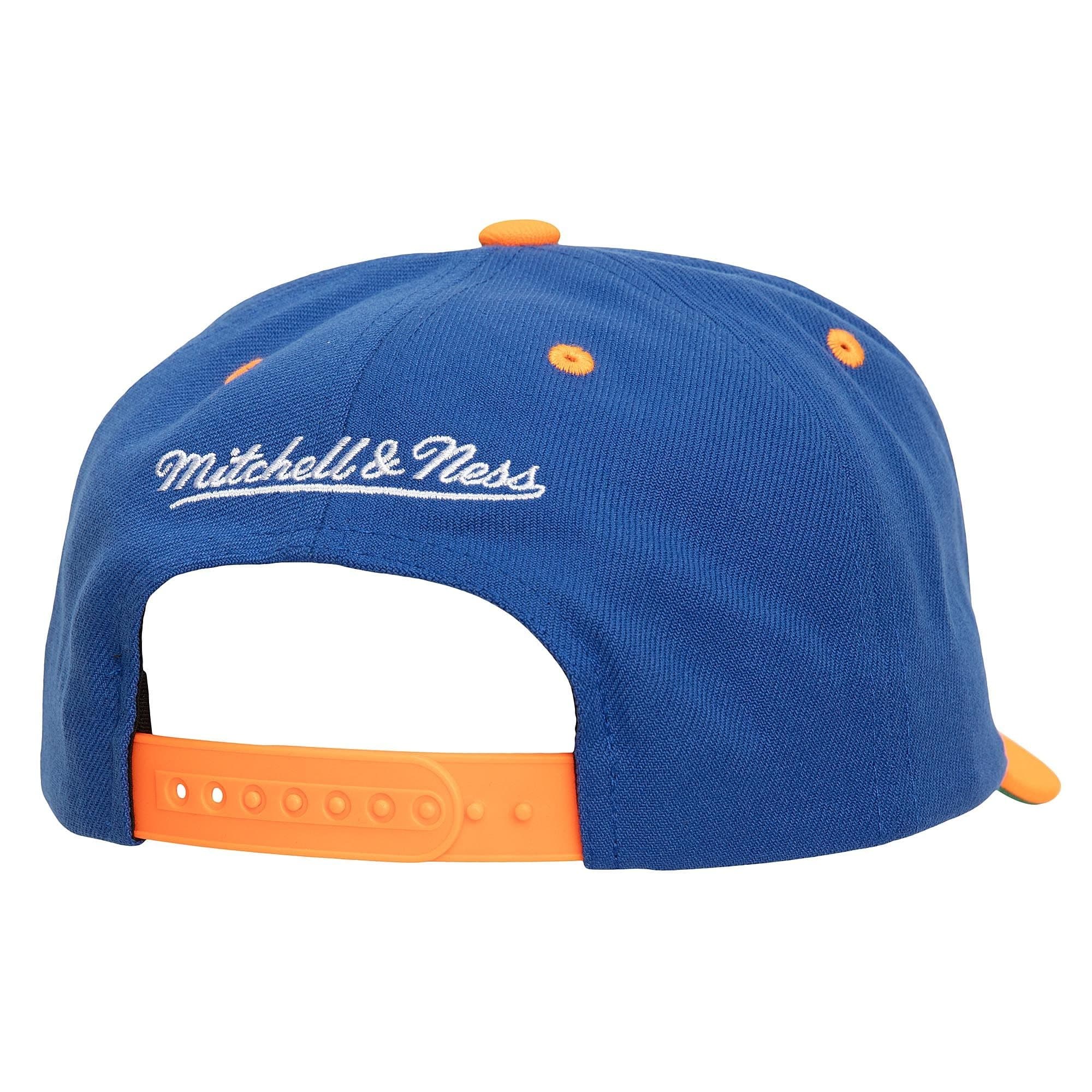 Голубая бейсболка с оранжевыми акцентами Mitchell & Ness Wavy Pro Snapback New York Knicks в ретро-стиле имеет застежку-защелку сзади для регулировки, вышитый логотип команды Никс, бренда Mitchell & Ness сзади и прямой козырек для максимального стиля. Бейсболка выполнена из полиэстера с зеленой нижней частью козырька.- Цвет: Голубой