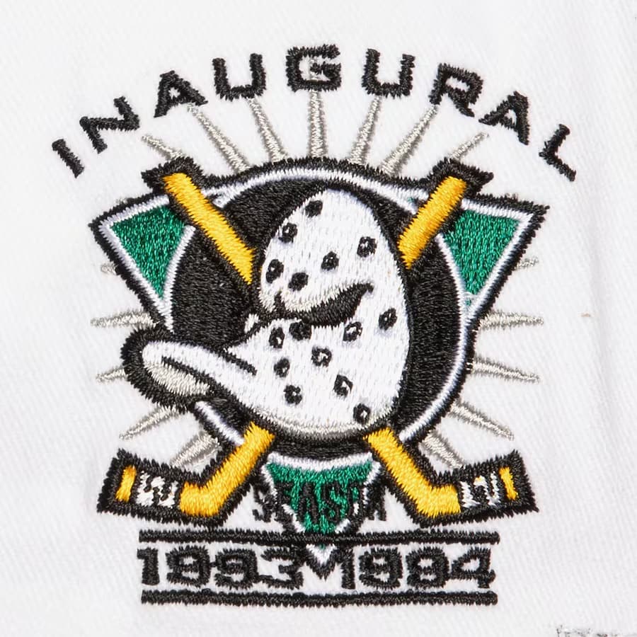 - Бейсболка Mitchell & Ness White Anaheim Ducks Tail Sweep Pro Vintage Snapback Hat
