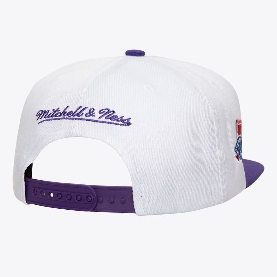 Белая бейсболка с фиолетовыми акцентами Mitchell & Ness White Los Angeles Lakers 1996 NBA Draft Hardwood Classics Snapback Hat в ретро-стиле имеет застежку-защелку сзади для регулировки, вышитый логотип команды Лэйкерс, бренда Mitchell & Ness сзади и прямой козырек для максимального стиля. Бейсболка выполнена из 100% хлопка с зеленой нижней частью козырька.