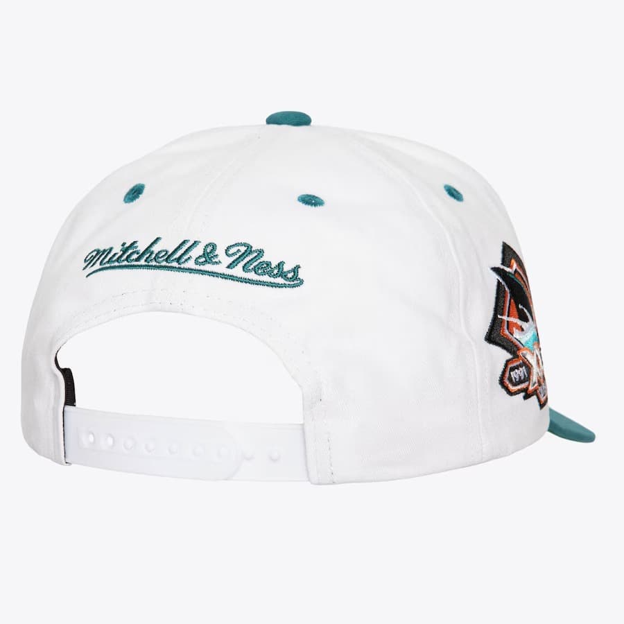 Наступило время НХЛ! Белая бейсболка c бирюзовыми и оранжевыми акцентами Mitchell & Ness White San Jose Sharks Tail Sweep Pro Snapback Hat в ретро-стиле имеет застежку-защелку сзади для регулировки, вышитый логотип Шаркс, бренда Mitchell & Ness сзади и загнутый козырек для максимального стиля. Бейсболка выполнена из хлопка с зеленой нижней частью козырька.- Цвет: Белый