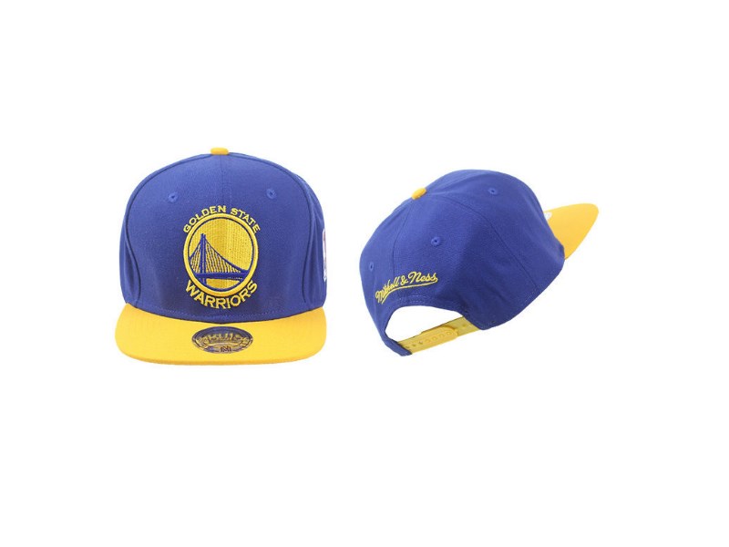 Синяя с жёлтым козырьком бейсболка snapback. Объемная вышивка эмблемы Golden State Warriors на фронтальной части и название бренда сзади. С левого бока бейсболки вышита эмблема NBA. Размер регулируется пластиковым ремешком сзади. C внутренней стороны прошита влагопоглощающей лентой.
