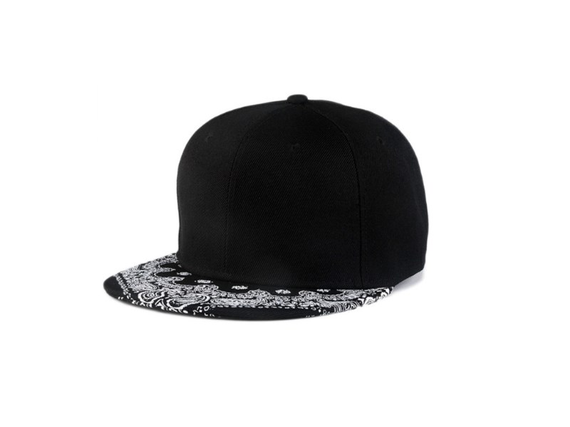 Полностью чёрная кепка с прямым козырьком, изготовленная из 100% полиэстра. Козырёк с обоих сторон раскрашен белыми старинными узорами. Размер регулируется пластиковым ремешком с застёжкой сзади. C внутренней стороны прошита влагопоглощающей лентой.- Материал: 100% полиэстр