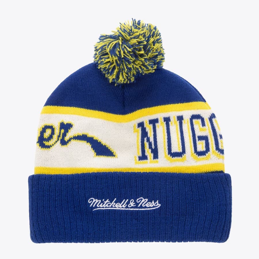 - Шапка Mitchell & Ness Blue Denver Nuggets Hardwood Classics Block Sweep Cuffed Knit Hat with Pom