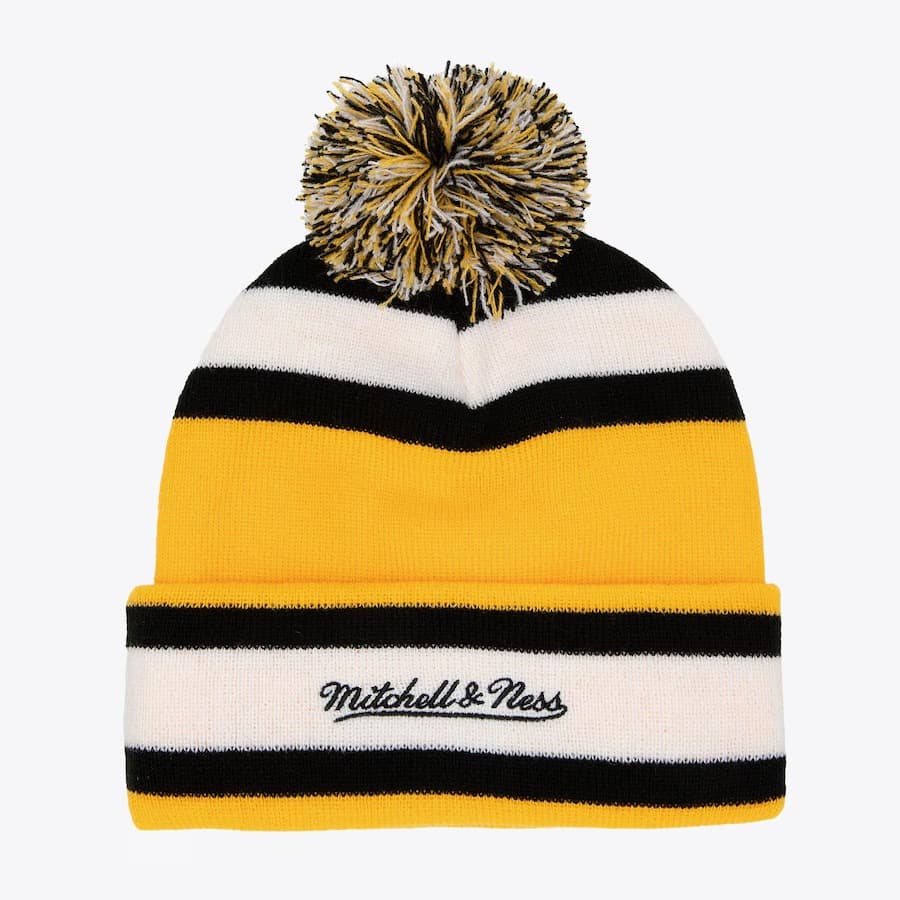Заказать шапку Mitchell & Ness Gold Boston Bruins 1970 Cuffed Knit Hat with Pom с бесплатной доставкой.