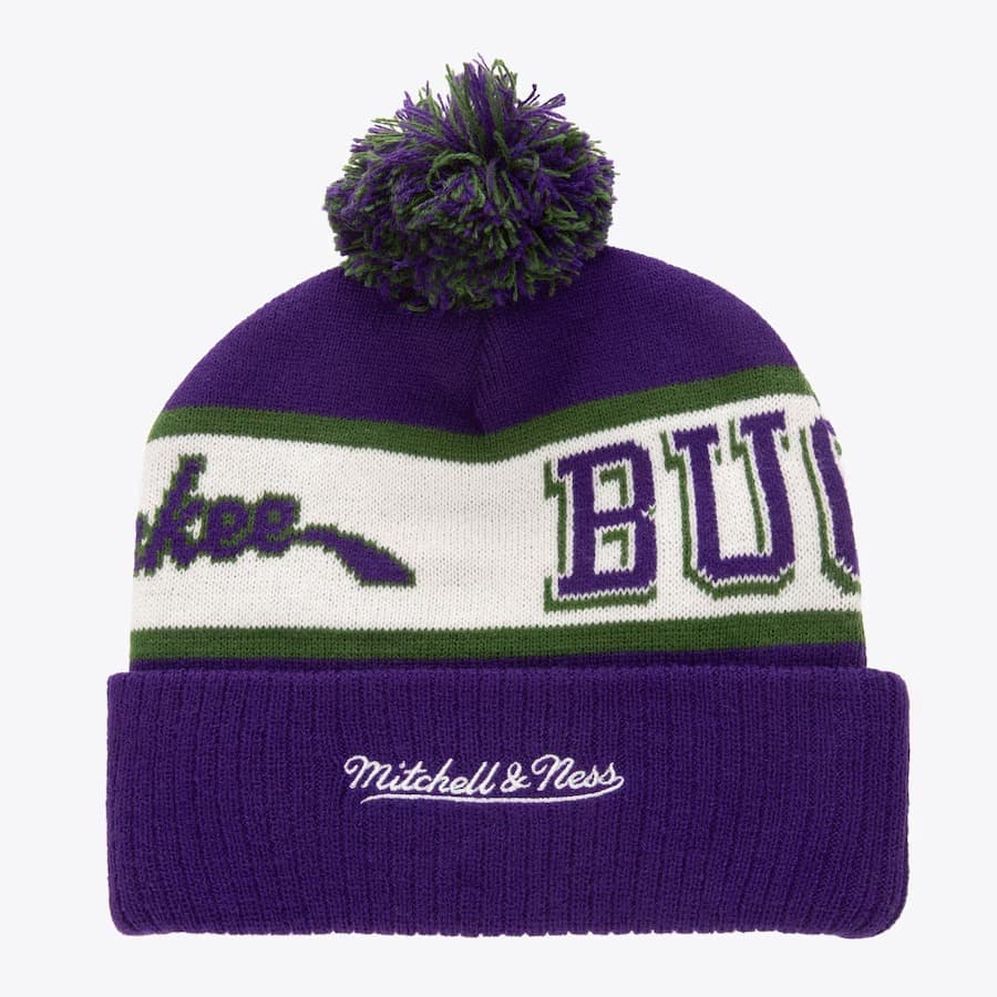 - Шапка Mitchell & Ness Purple Milwaukee Bucks Hardwood Classics Block Sweep Cuffed Knit Hat with Pom