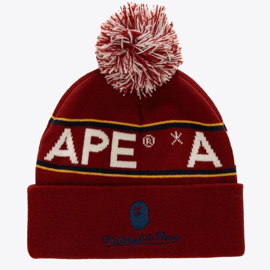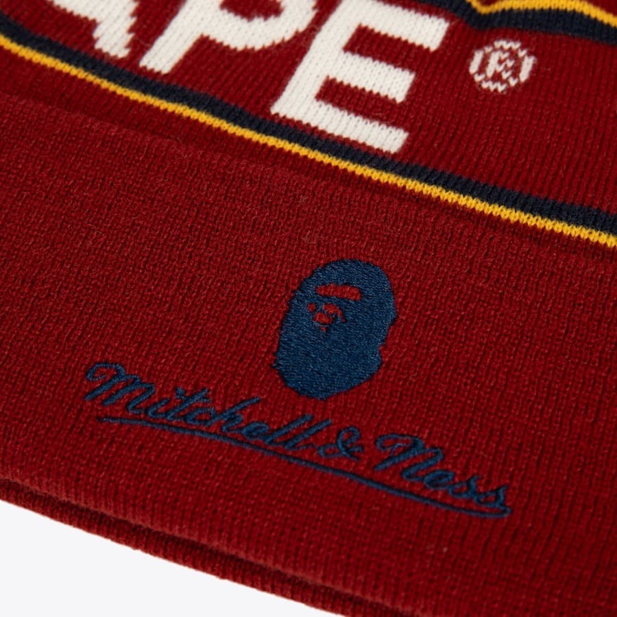 - Шапка Mitchell & Ness x Bape Red Florida Panthers Cuffed Knit Pom Hat