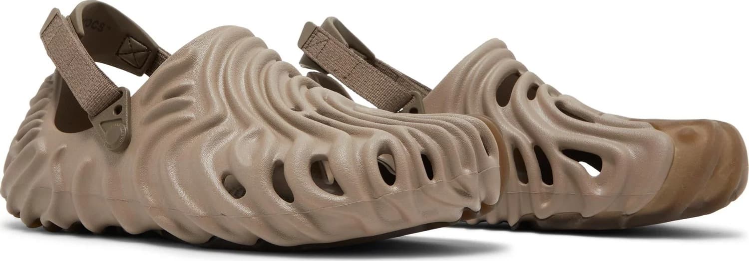 Модель Salehe Bembury x Crocs Pollex Clog 'Brown', созданная в сотрудничестве с известным дизайнером обуви, представляет собой ремикшированную версию классического силуэта Clog. Темно-тауповый оттенок заливает реконструированную пенную конструкцию, подчеркнутую серией вогнутых гребней, которые напоминают фирменный мотив Бембери - отпечатки пальцев. Вентиляционные отверстия расположены в местах повышенного нагрева стопы для направленной вентиляции. На съемном пяточном ремешке расположен двойной брендинг Crocs и Salehe Bembury.- Цвета: Brown