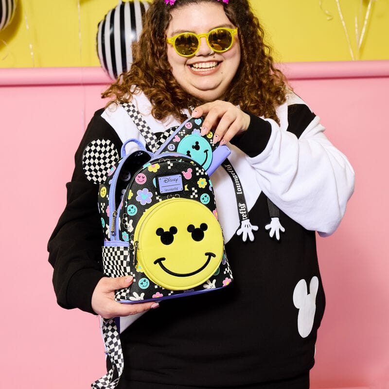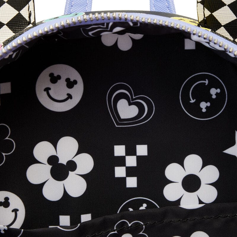 Рюкзак Mickey Mouse Y2K Mini Backpack будет прекрасным приобретением для фаната! Добавьте немного блеска в свой гардероб с модным аксессуаром! Мини-рюкзак Loungefly Mickey Y2K перекликается с мотивами начала 2000-х годов, украшенный принтом из пастельных сердечек, звезд, цветов и многого другого. На переднем кармане на молнии рюкзака красуется смайлик, а глаза образуют силуэты Микки Мауса. Сверху черно-белый шахматный принт покрывает 3D-уши мыши и продолжается на боковых карманах сумки. Этот мини-рюкзак в стиле миллениалов станет отличным дополнением к любому наряду и сохранит ваши вещи в безопасности, пока вы гуляете с подружками.