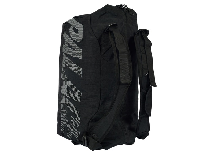 Сумка Palace Clipper Bag Black имеет полностью черную расцветку и крупный серый логотип бренда в полоску, нанесенный в средней части. Сумка также имеет удобные регулируемые ремешки, с помощью которых ее можно носить на плечах. Размер и большая вместительность делают сумку универсальной. В нее легко можно поместить необходимые вещи для путешествий или тренировок.- Материал: полиэстер