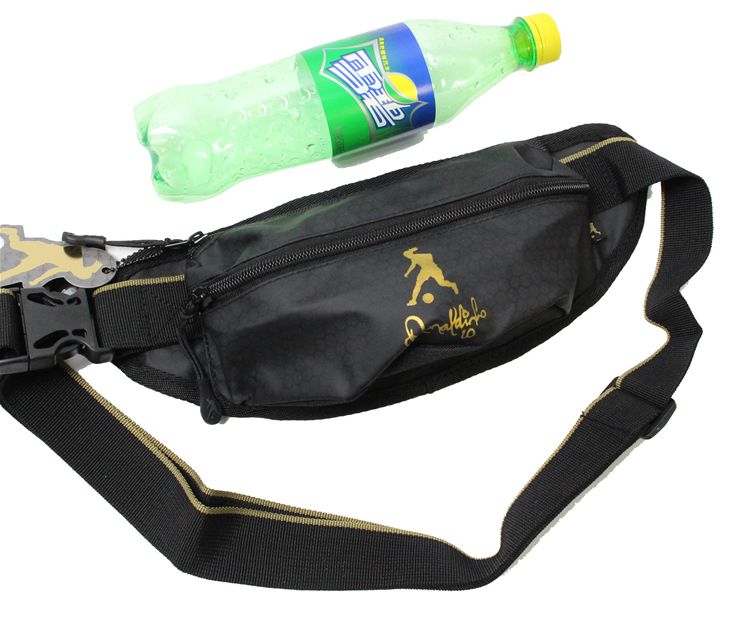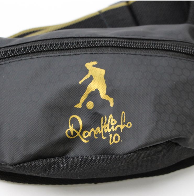 Поясная сумка для занятий спортом с символикой легенды футбола Роналдиньо. Вмещает в себя мобильный телефон, ключи, деньги под карман на двойной молнии. Можно использовать как повседневную. Размер, показанный ниже, сравнивается с бутылкой для напитка. Пряжка очень крепкая! Головка молнии с нейлоновым дизайном.- Материал: 100% полиэстер