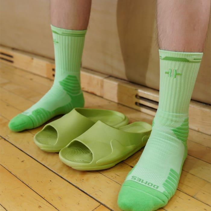Носки Ehot Domes Grass Green Socks мятного цвета с ярко-зелеными элементами отлично подходят для тренировок. Мысок и пятка создают оптимальную амортизацию во время занятий, а фактурная поверхность подошвы препятствует скольжению. Носки имеют эргономичную конструкцию, которая защищает от растяжений и снижает нагрузку на стопы.