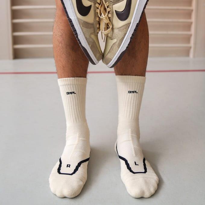 Носки Ehot Mamba Beige Crew Socks высокие бежевого цвета с лаконичной черной полоской созданы в честь Коби Брайанта и его прозвища Black Mamba. Уплотненные рельефные вставки создают дополнительную поддержку лодыжки. Они оптимально подходят для тренировок и частой носки, так как свободно пропускают воздух и впитывают влагу.