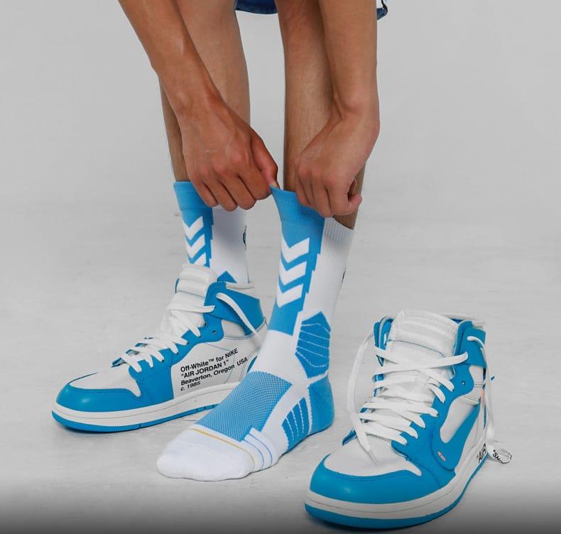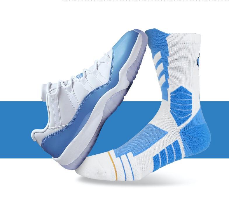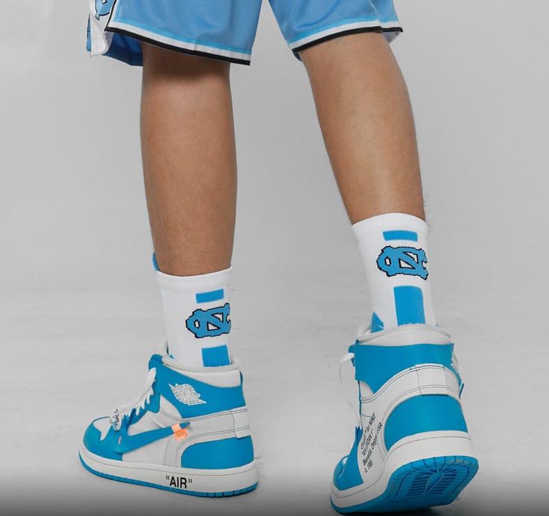 Носки Ehot North Carolina Arrow Crew Socks белого цвета понравятся любителю баскетбола, так как выполнены в цветах клуба North Carolina University и дополнены символикой команды, а так же графичными бело-голубыми стрелками. Носок с сетчатыми вставками имеет особое компрессионное плетение, так что они создают поддержку голеностопа в определенных местах.
