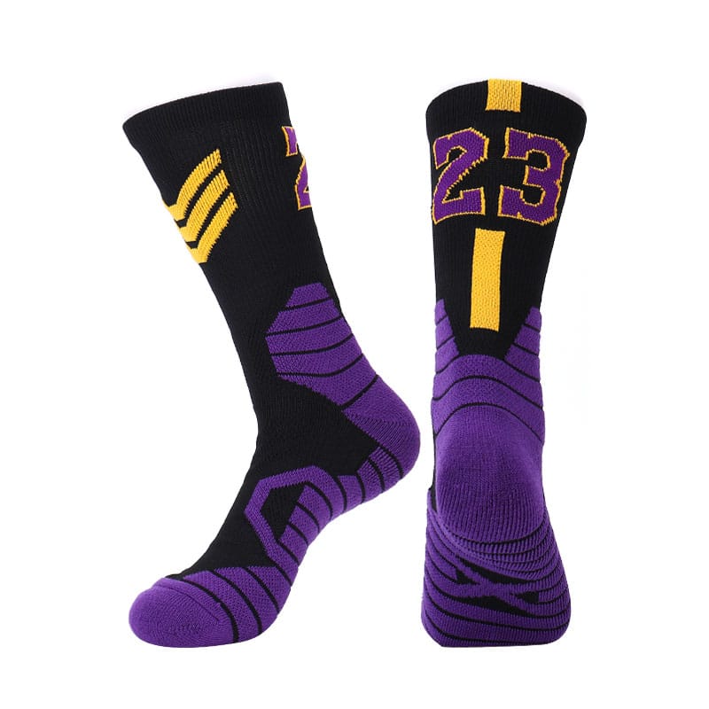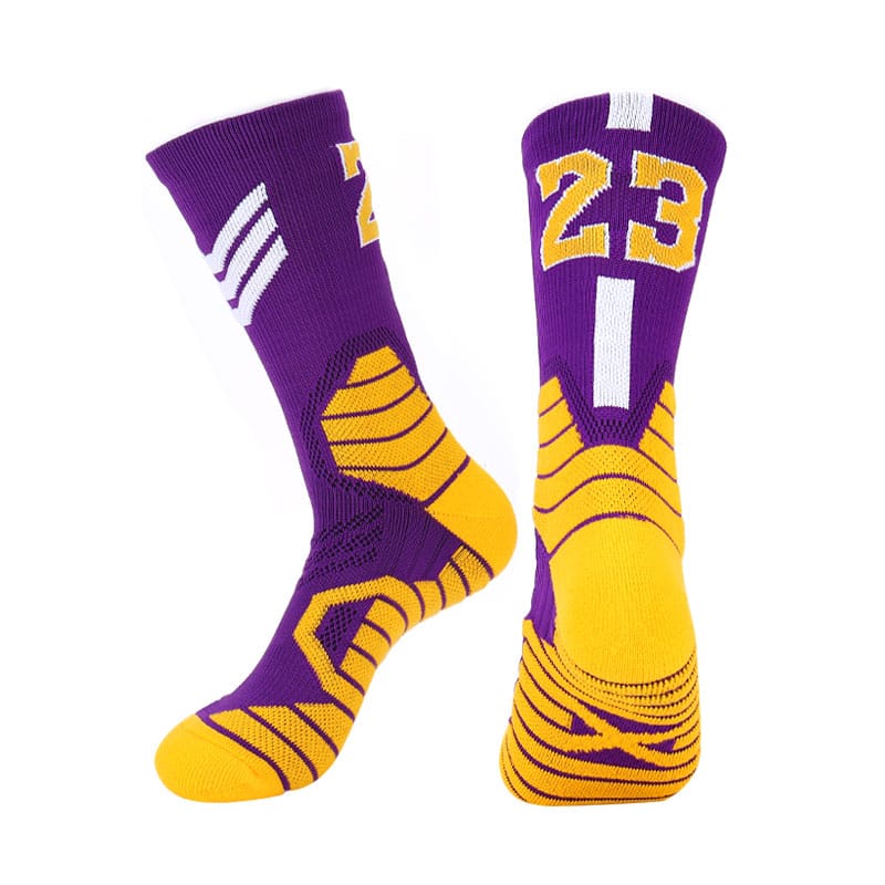 Носки Jinduo James 23 Training Socks выполнены из качественного полиэстера и создают дополнительный комфорт во время тренировки. Эластичная ткань особого плетения свободно пропускает воздух. Уплотненная подошва создает амортизацию и снижает трение. Такие носки в цветах клуба Lakers с номером 23 игрока Леброна Джеймса дадут всем понять, за какую команду вы болеете.