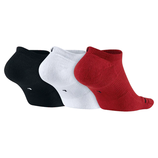 Носки Jordan Everyday Max No-Show Socks изготовлены из ткани, отводящей пот, и сетчатых панелей для воздухопроницаемости. Пятка и носок усилены для долговечности и поддержки.- Цвет: Черный, Белый, Красный