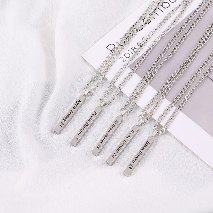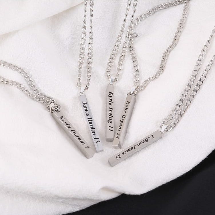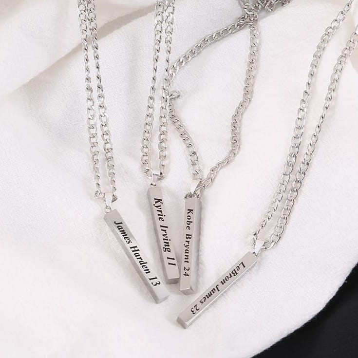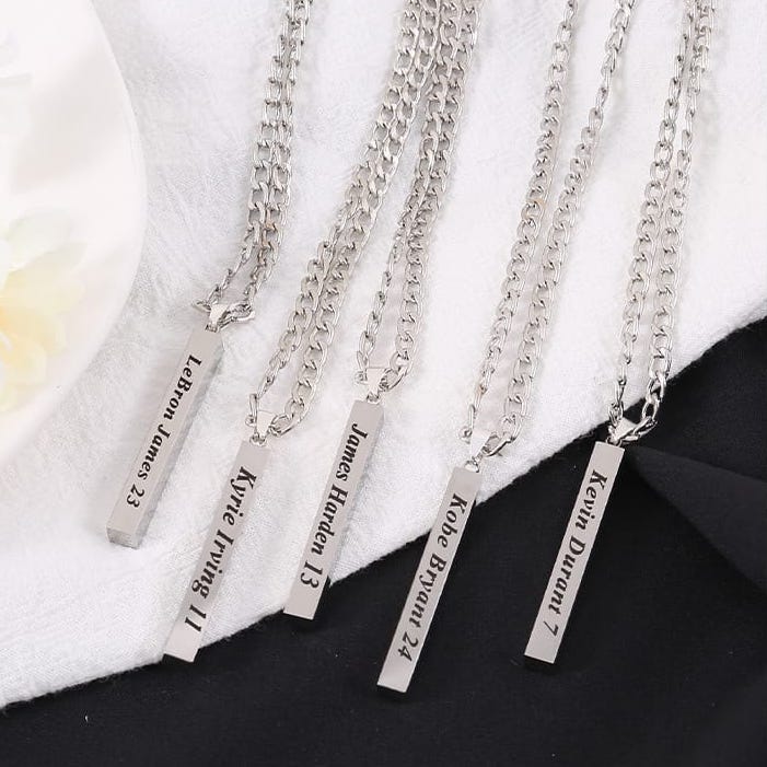 Подвеска Jinduo MVP Rectangle Pendant прямоугольной формы станет отличным подарком любителю баскетбола. Она украшена гравировкой с именем ключевого игрока NBA с его номером. Такая подвеска на лаконичной цепочке дополнит образ, как стильный аксессуар.