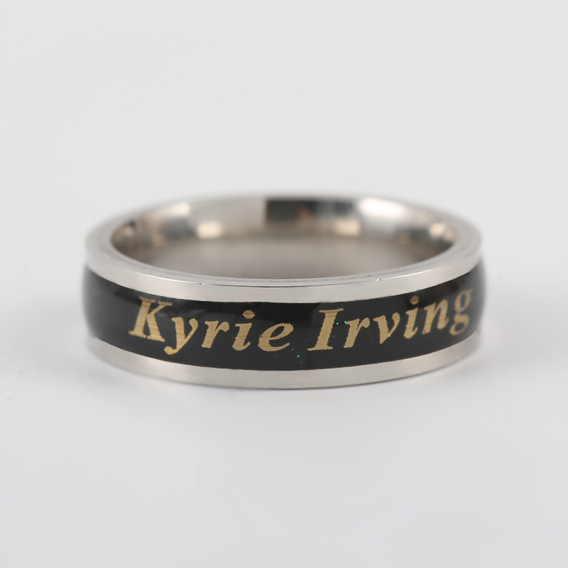 Кольцо Jinduo Irving Ring Gift Set выполнено из прочной стали, и его украшает имя баскетбольного игрока Kyrie Irving. В комплекте кроме аксессуара вы найдете небольшую коробку черного цвета, а также шнурок с застежкой, так что кольцо удобно носить, как подвеску. Такой подарочный комплект можно выбрать для себя, как аксессуар или сделать сюрприз фанату.