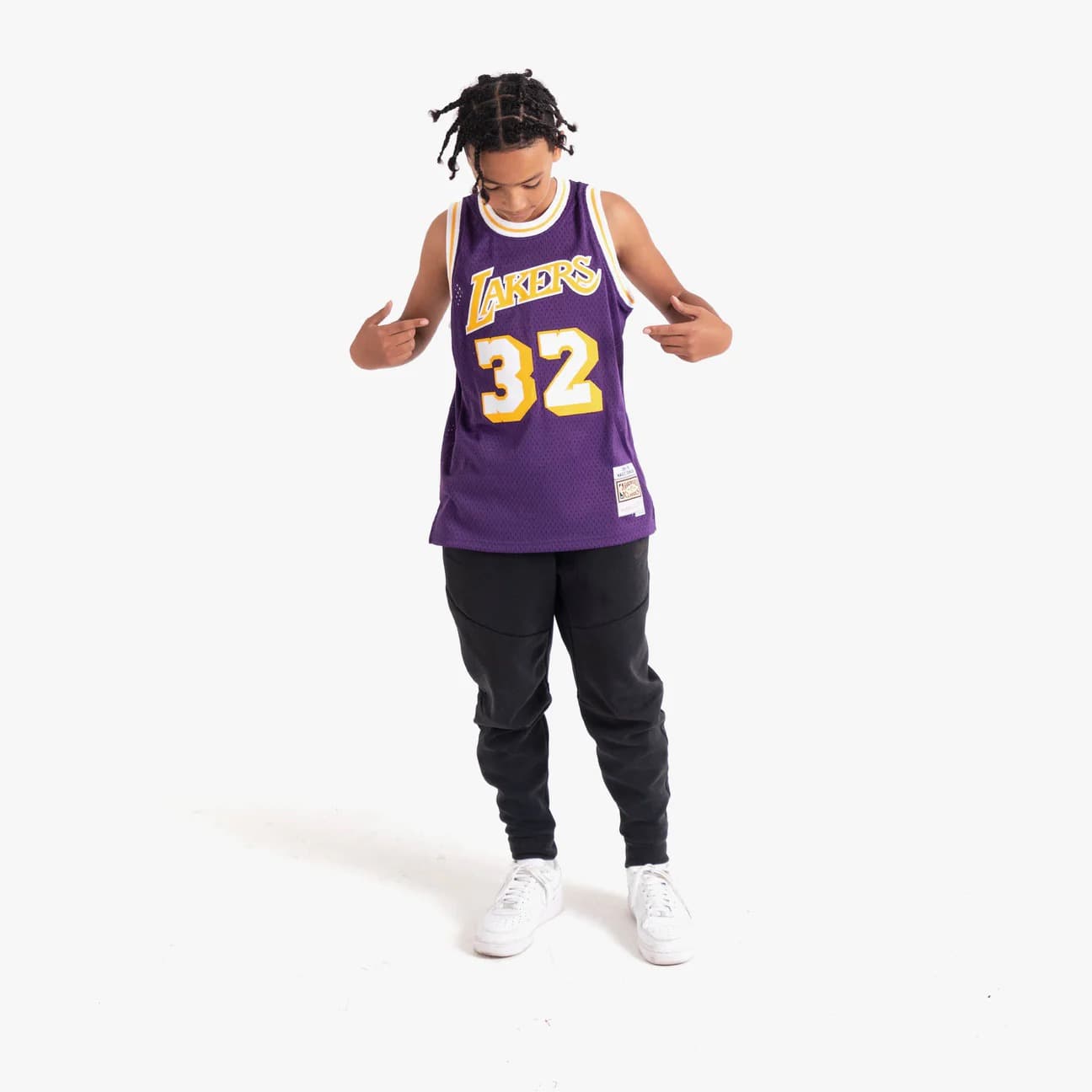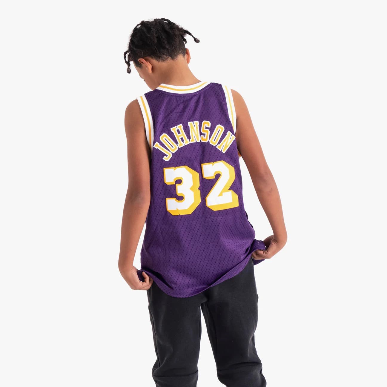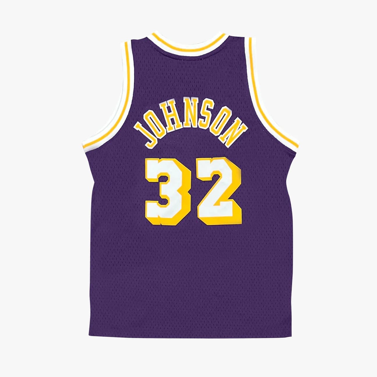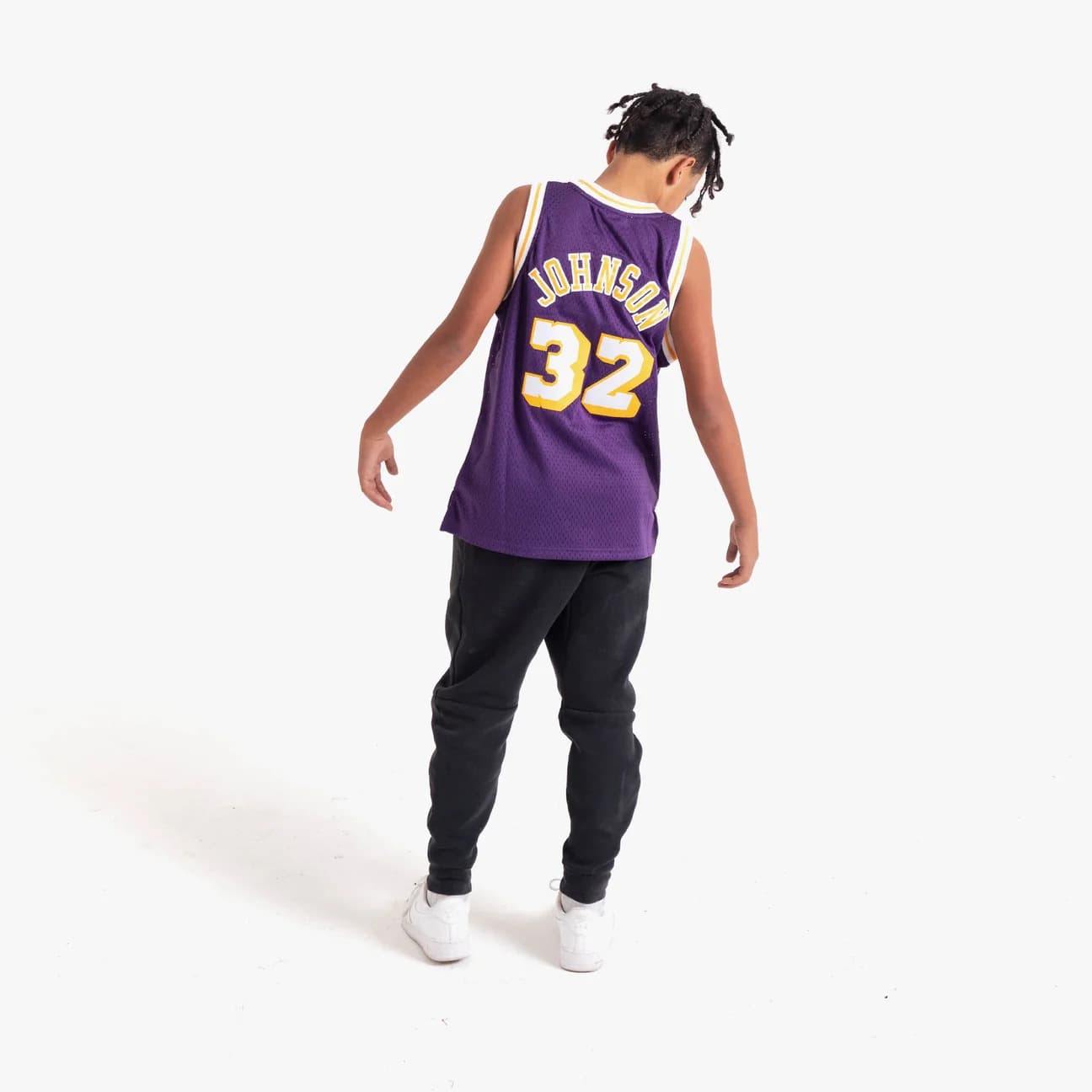 - Баскетбольная джерси 1984-85 Los Angeles Lakers Magic Johnson #32 Youth Swingman Hardwood Classics Purple Jersey