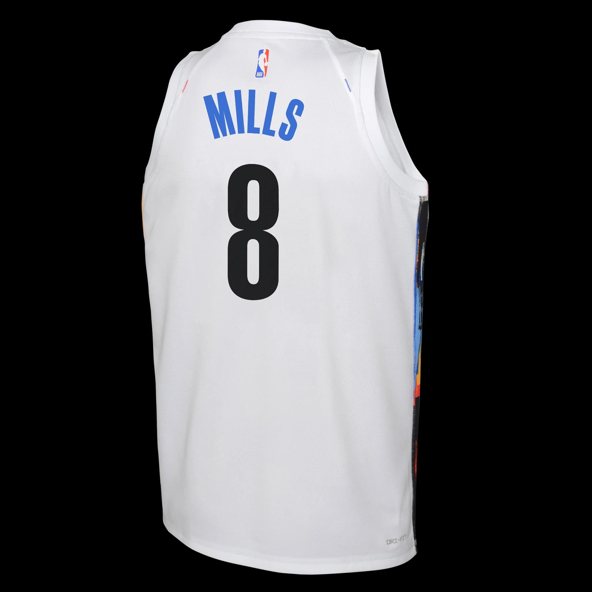 - Баскетбольная джерси 2022-2023 Brooklyn Nets Patty Mills # 8 Youth Swingman City Edition White Jersey