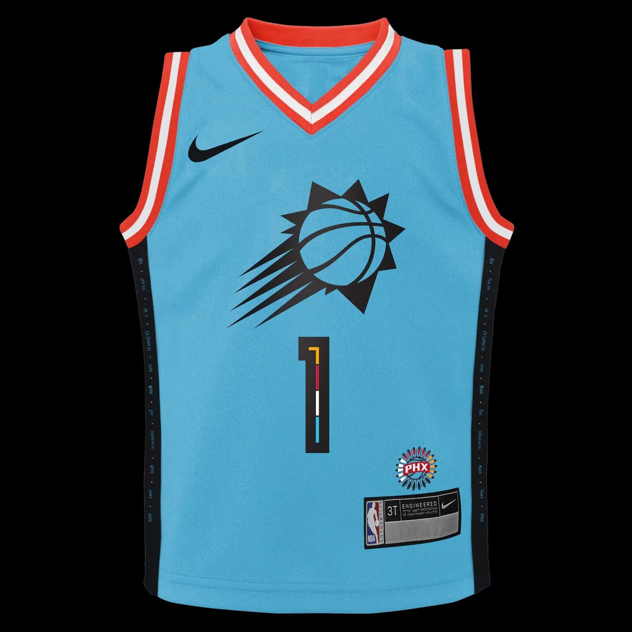 - Баскетбольная джерси 2022-23 Phoenix Suns Devin Booker #1 Boys Swingman City Edition Teal Jersey