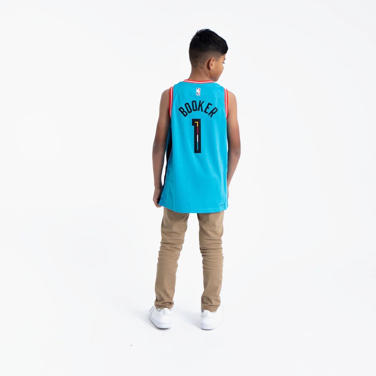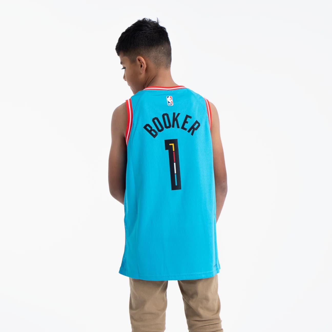 - Баскетбольная джерси 2022-23 Phoenix Suns Devin Booker #1 Youth Swingman City Edition Teal Jersey