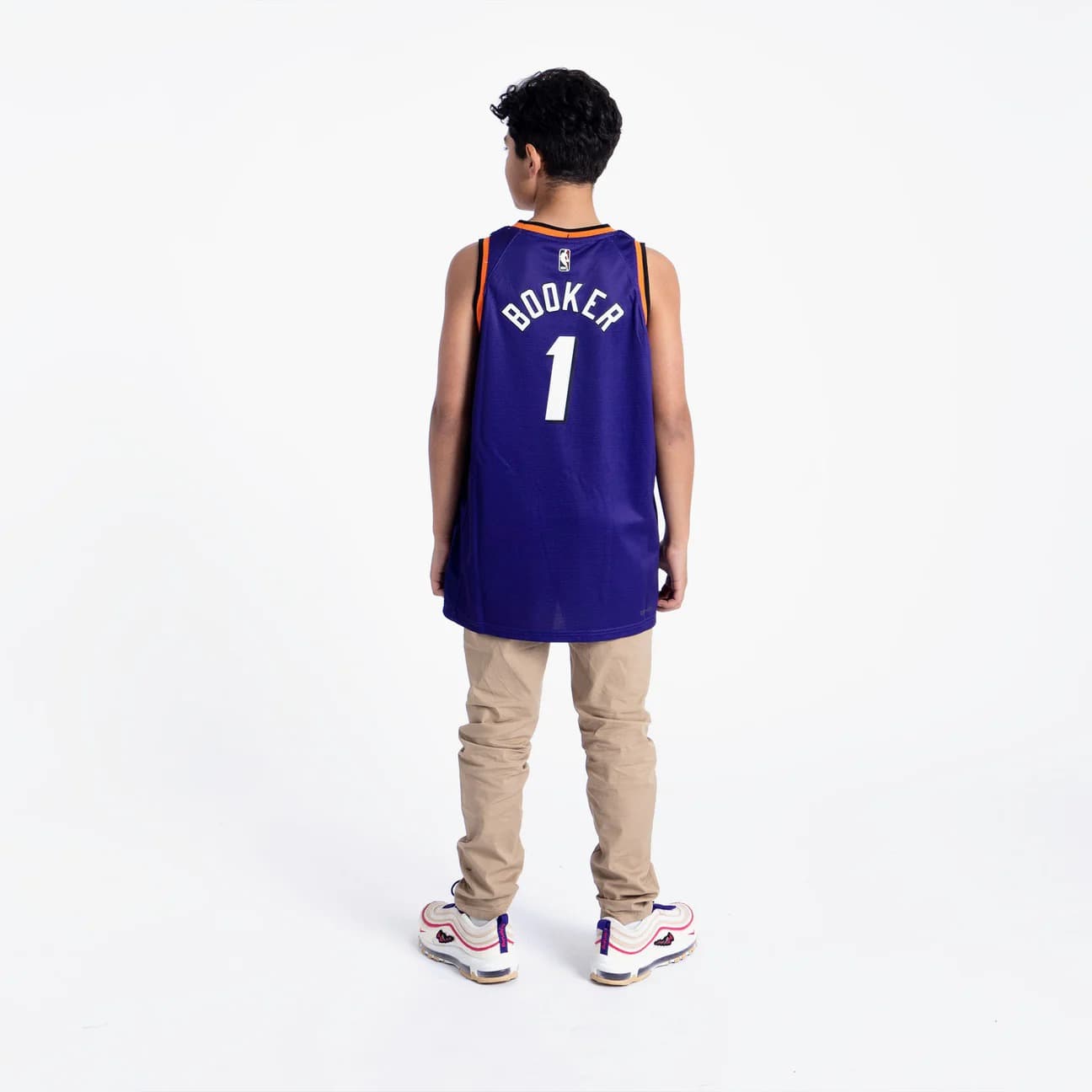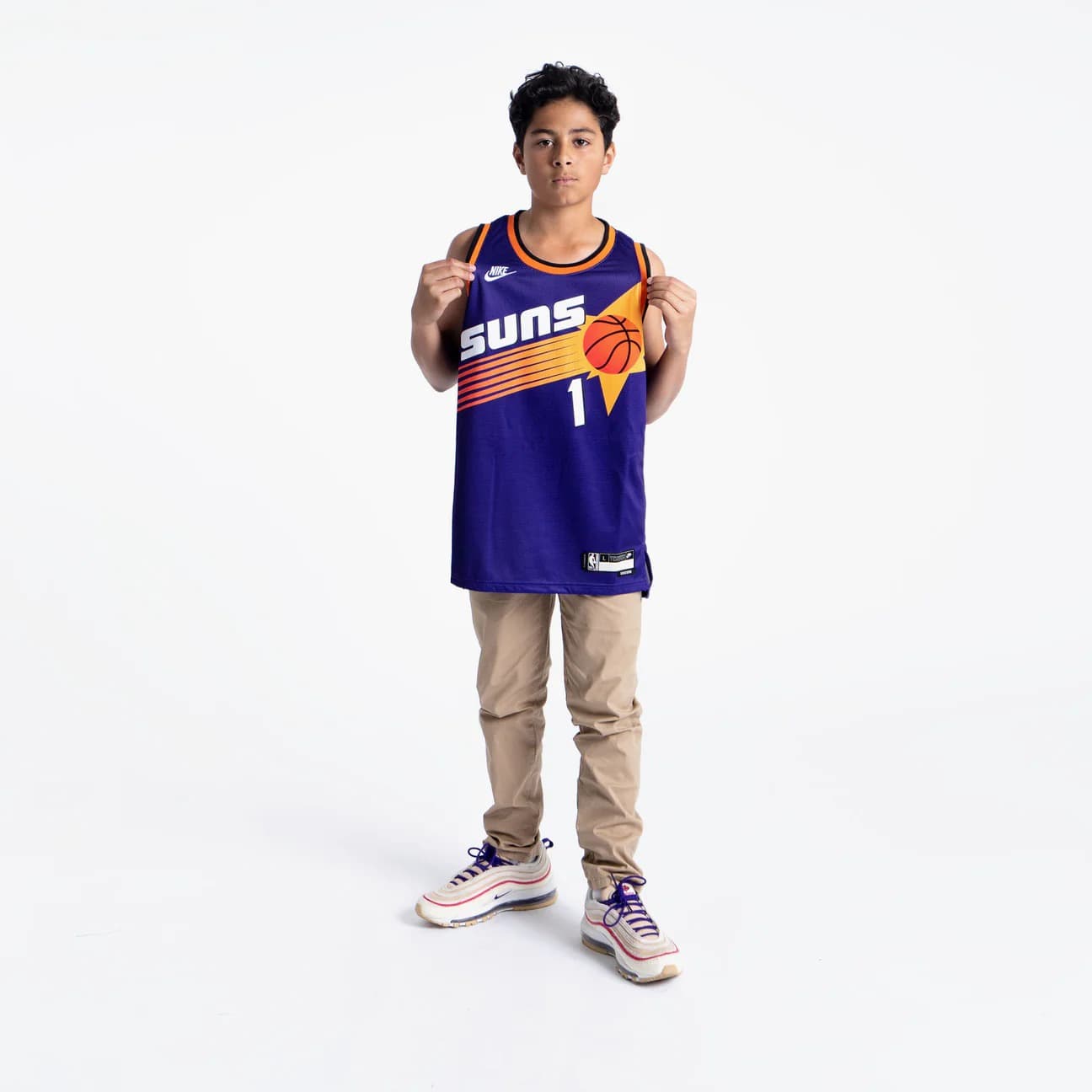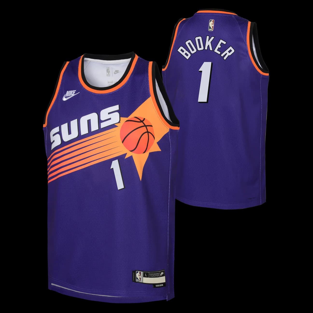 - Баскетбольная джерси 2022-23 Phoenix Suns Devin Booker #1 Youth Swingman Classic Edition Purple Jersey