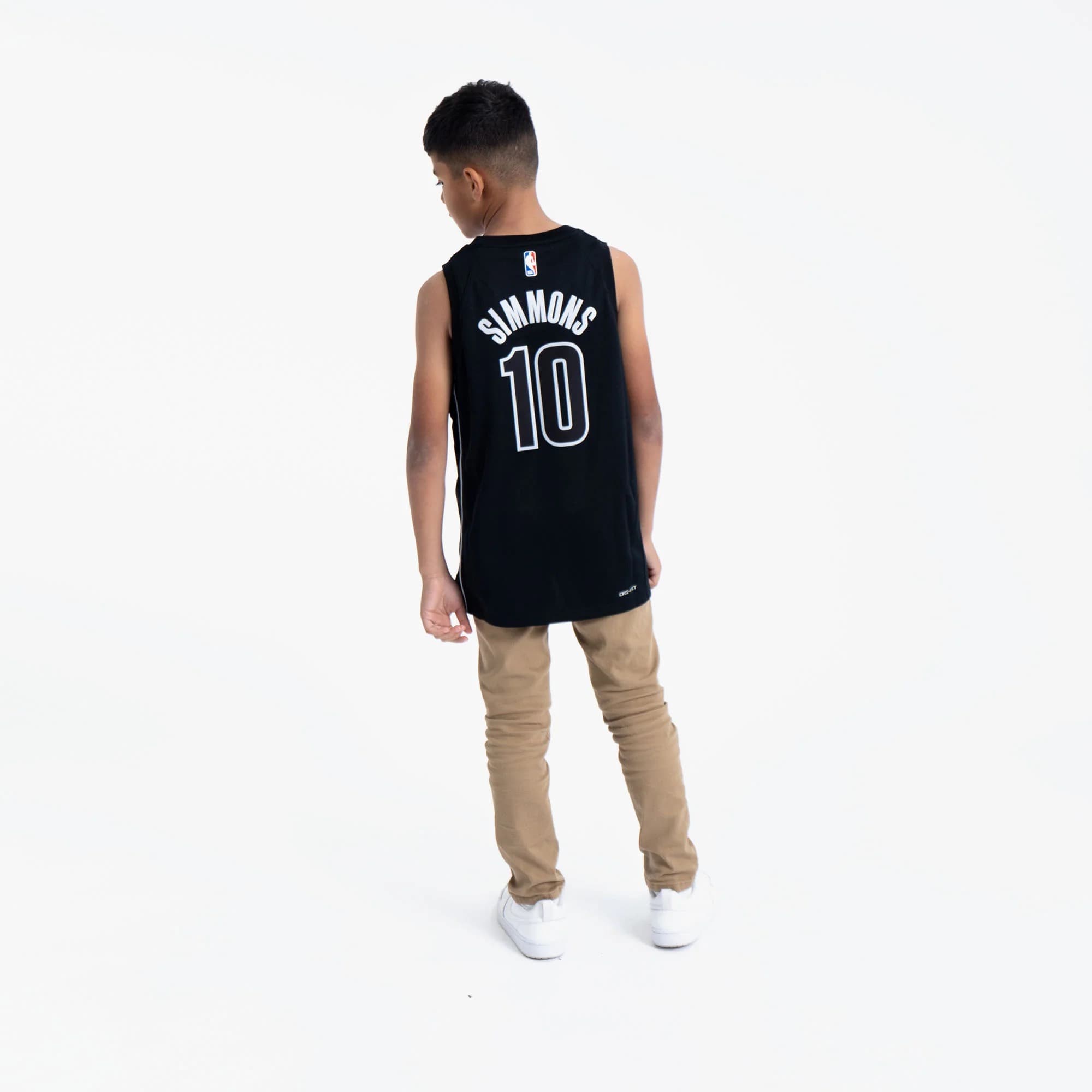 Юные баскетболисты представляют свою команду и болеют за любимую звезду Бена Симмонса в черной джерси 2022-2023 Brooklyn Nets Ben Simmons # 10 Youth NBA Swingman Statement Edition Black Jersey, которая выполнена из легкой, но прочной ткани двойного трикотажа, отводящей пот, с термонанесенными саржевыми именем и номерами без швов, а также с деталями дизайна, демонстрирующими вашу любовь к любимой команде и баскетболу.- Цвет: Черный