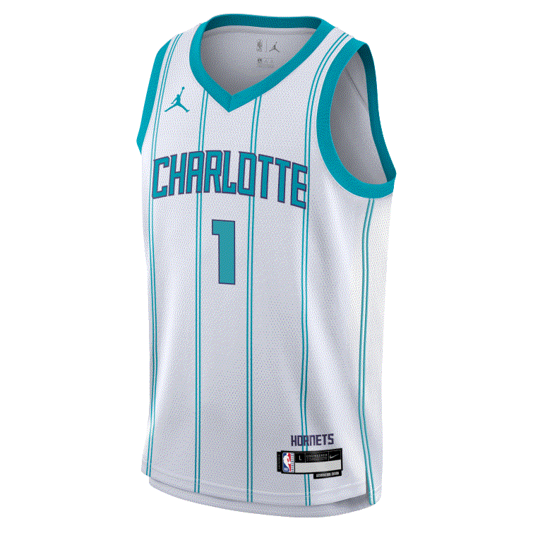 - Баскетбольная джерси 2023-24 Charlotte Hornets LaMelo Ball #1 Youth Swingman Association Edition White Jersey