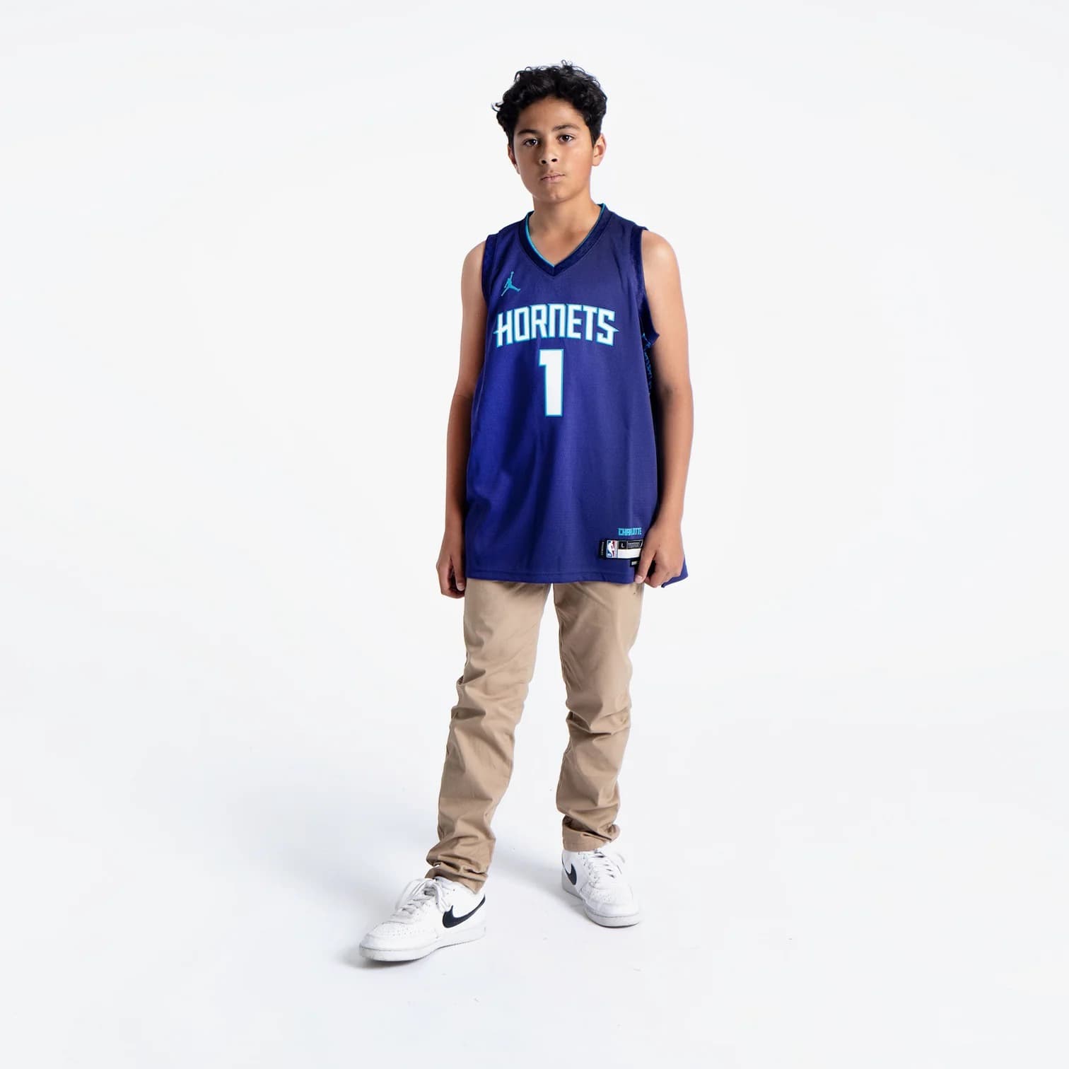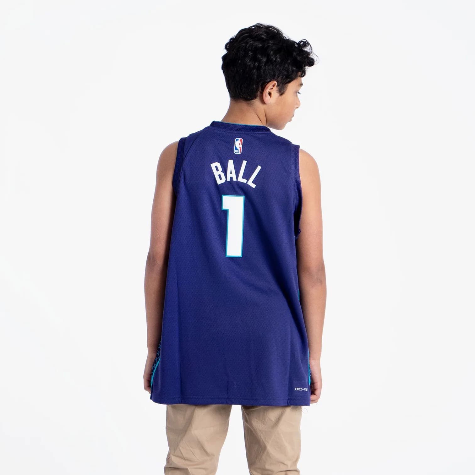 - Баскетбольная джерси 2023-24 Charlotte Hornets LaMelo Ball #1 Youth Swingman Statement Edition Purple Jersey