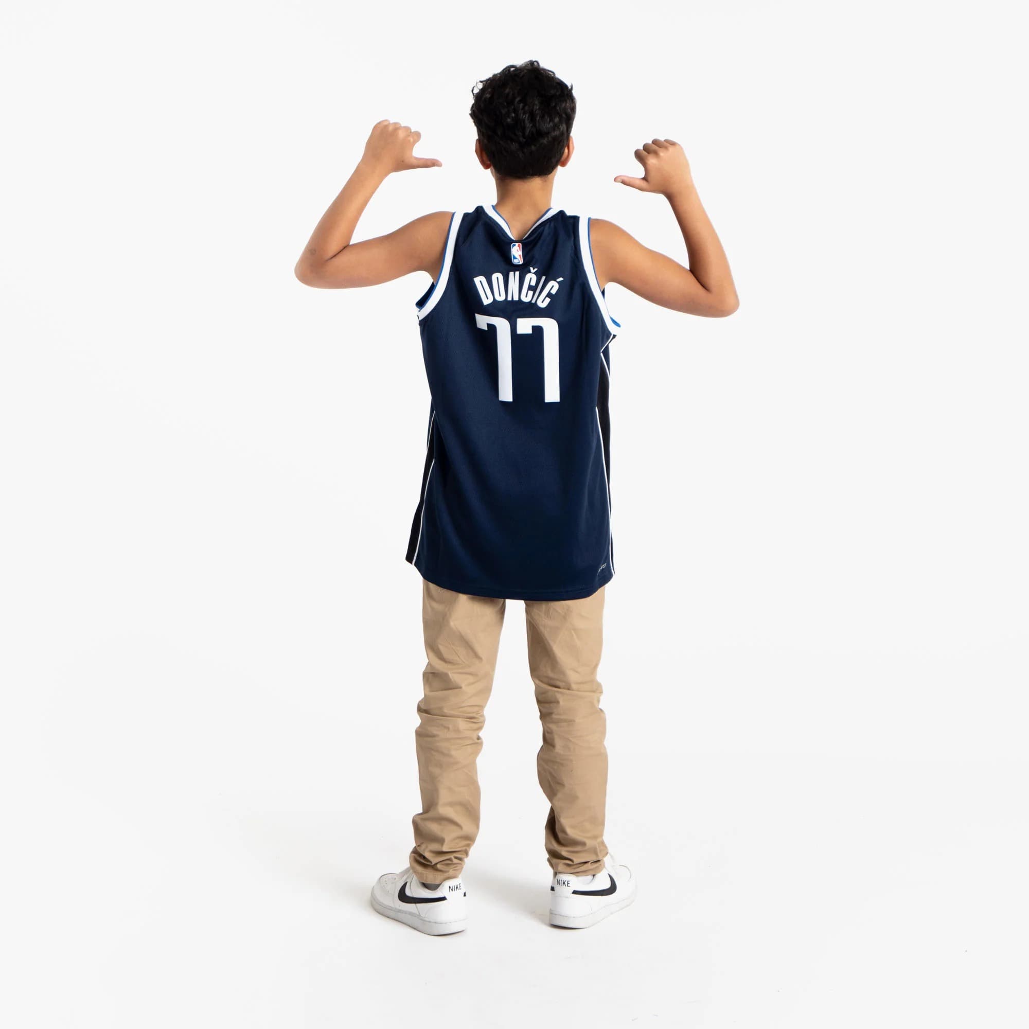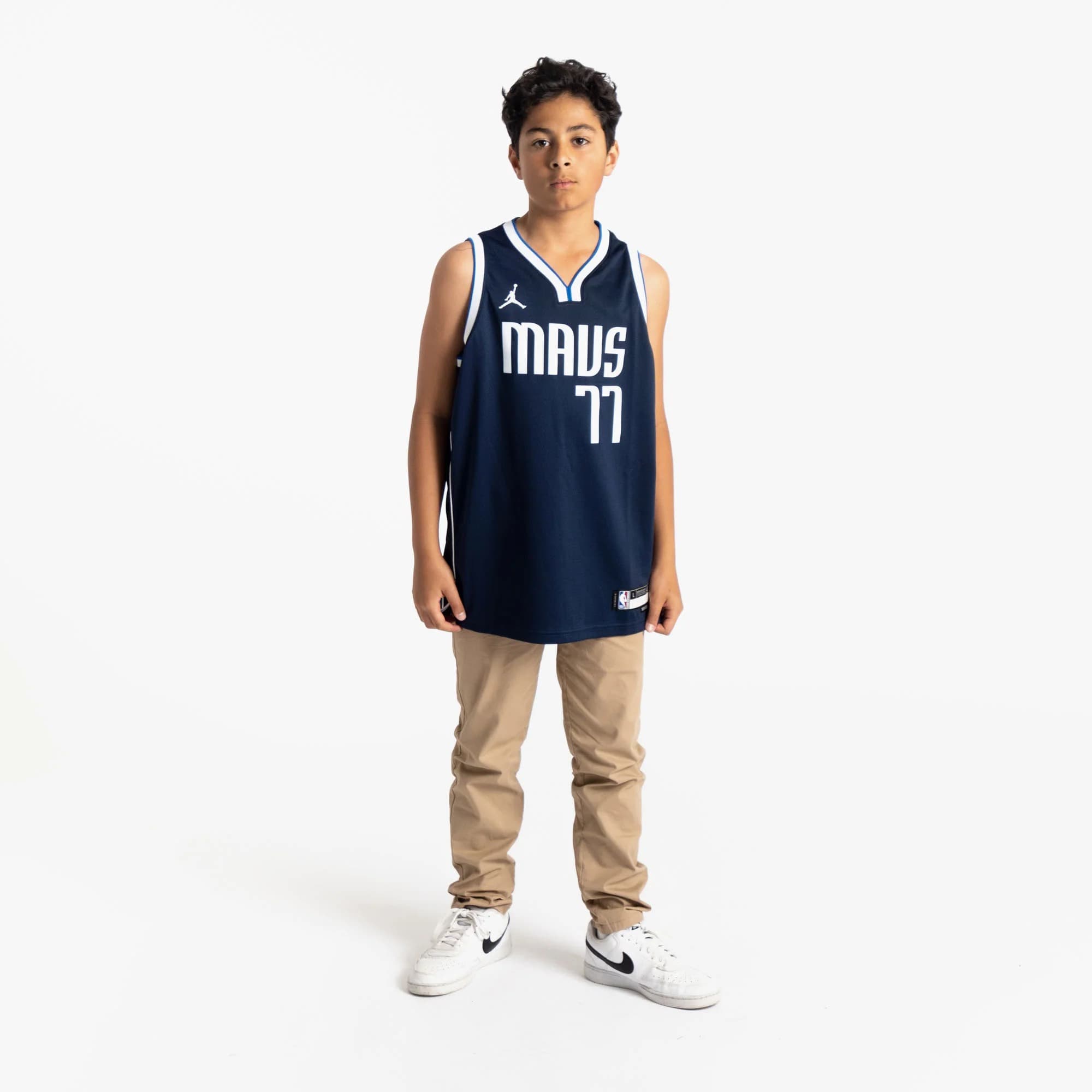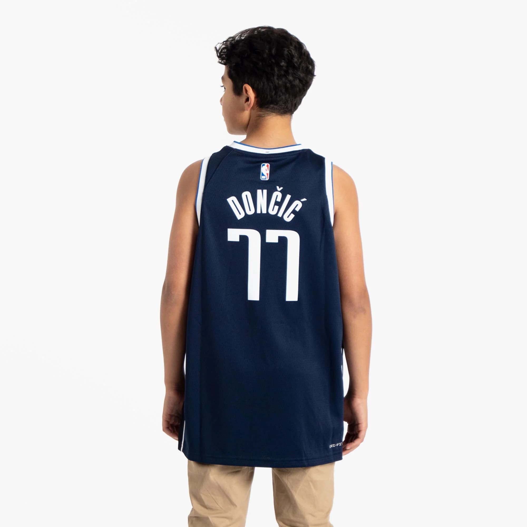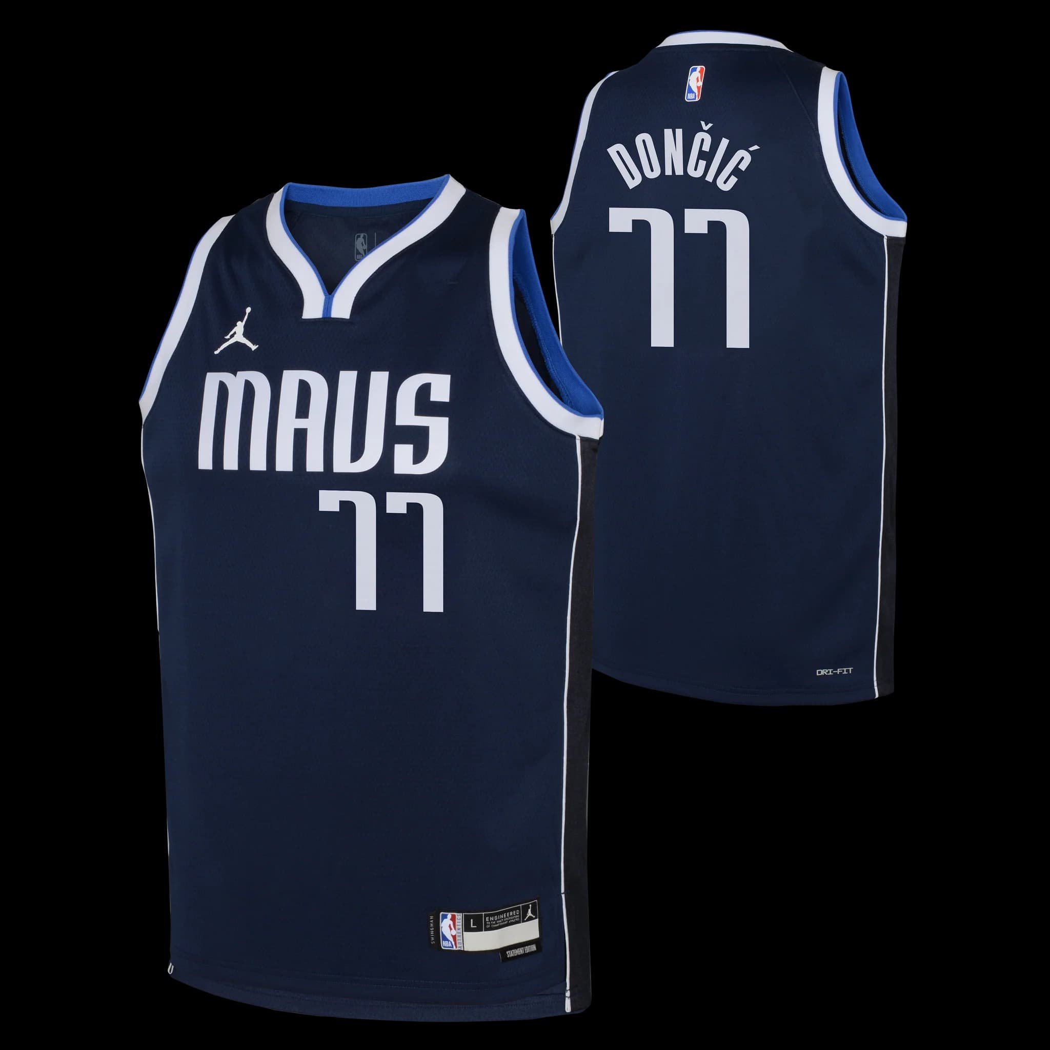 - Баскетбольная джерси 2023-24 Dallas Mavericks Luka Dončić #77 Youth Swingman Statement Edition Navy Jersey