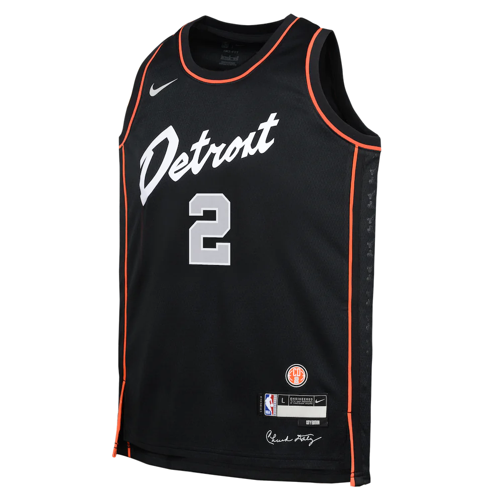 - Баскетбольная джерси 2023-24 Detroit Pistons Cade Cunningham #2 Youth Swingman City Edition Black Jersey