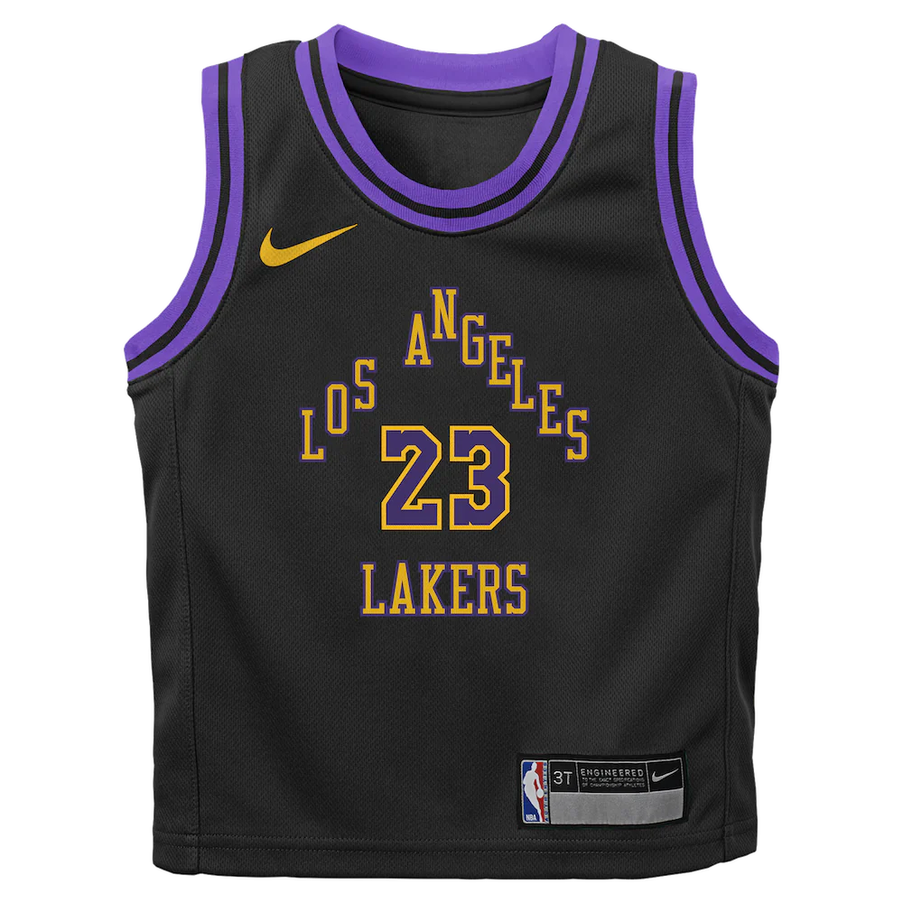 - Баскетбольная джерси 2023-24 Los Angeles Lakers LeBron James #23 Toddler City Edition Black Jersey