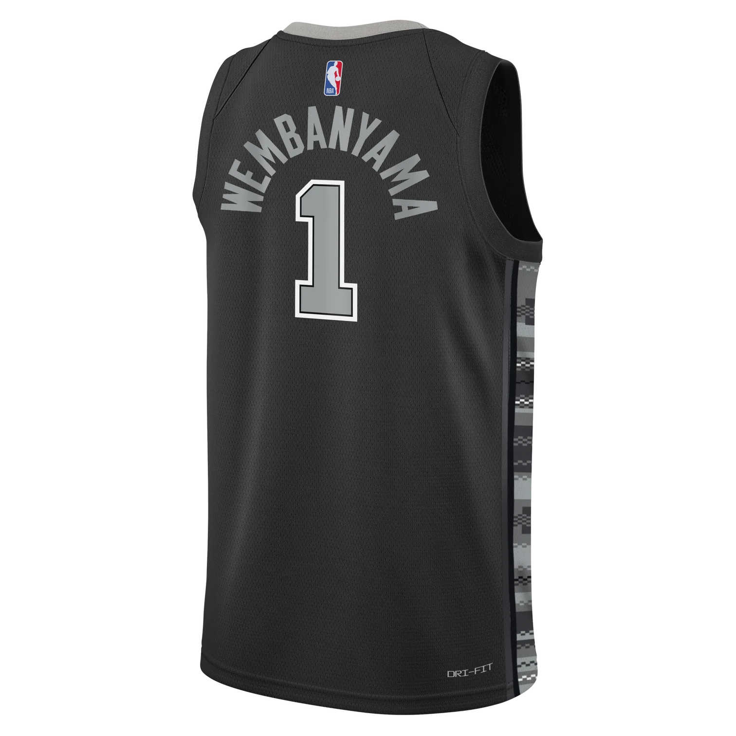 - Баскетбольная джерси 2023-24 San Antonio Spurs Victor Wembanyama #1 Youth Swingman Statement Edition Black Jersey