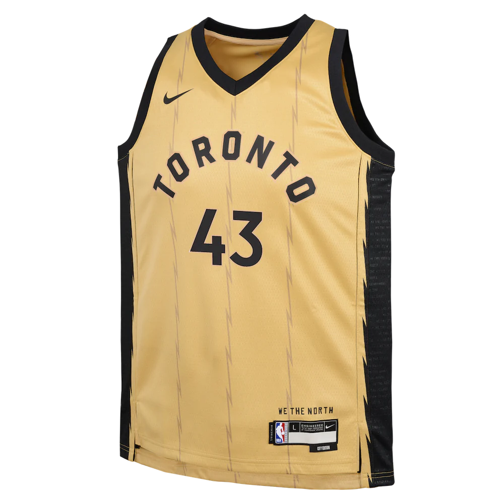 Баскетбольная джерси 2023-24 Toronto Raptors Pascal Siakam #43 Youth Swingman City Edition Gold Jersey
