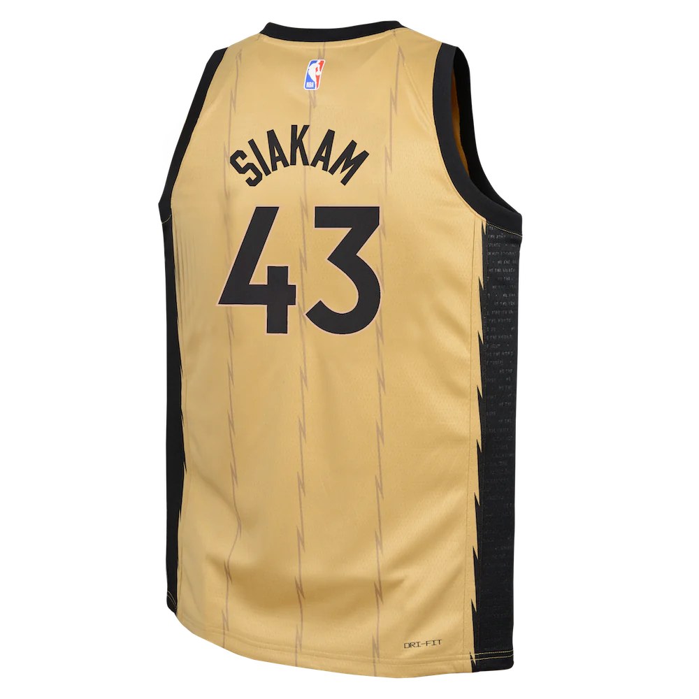 - Баскетбольная джерси 2023-24 Toronto Raptors Pascal Siakam #43 Youth Swingman City Edition Gold Jersey